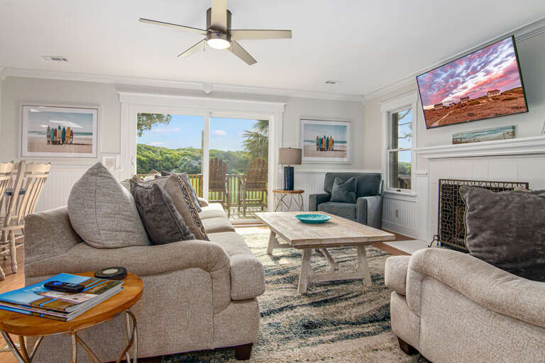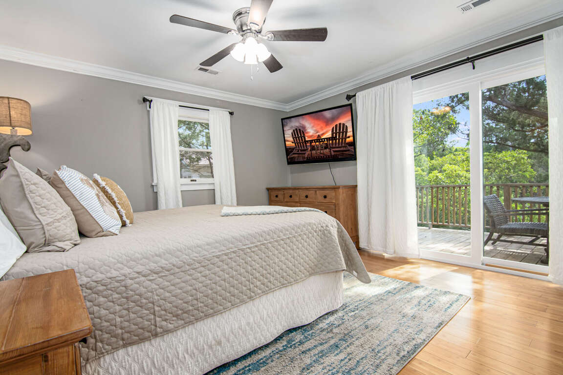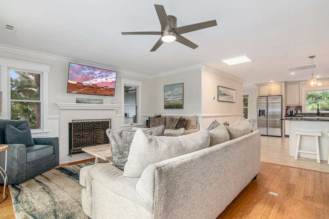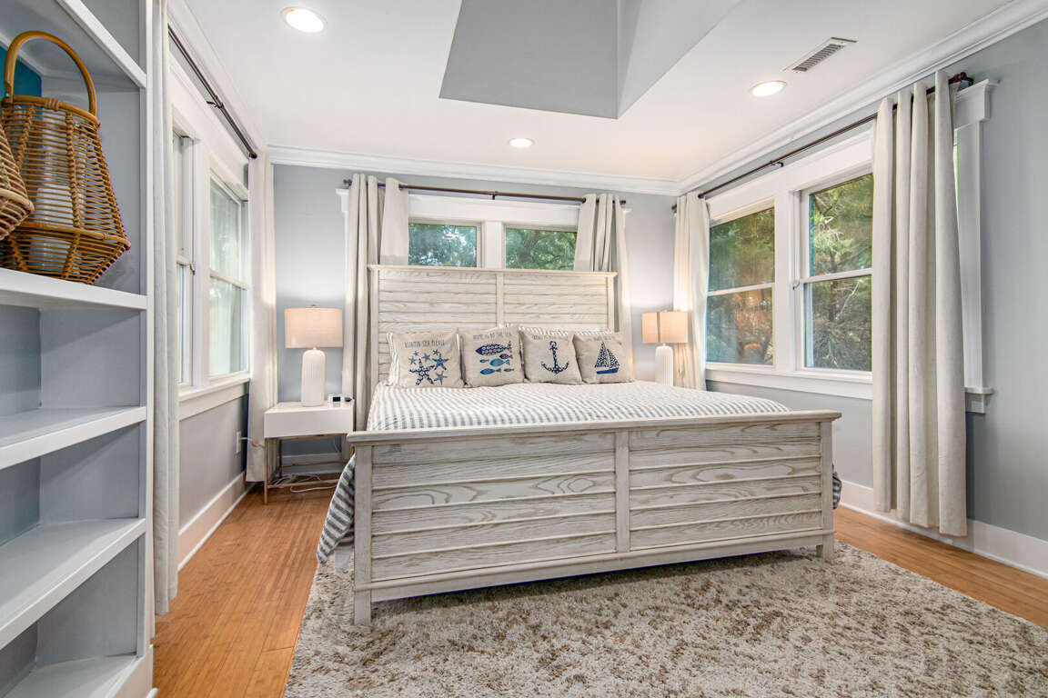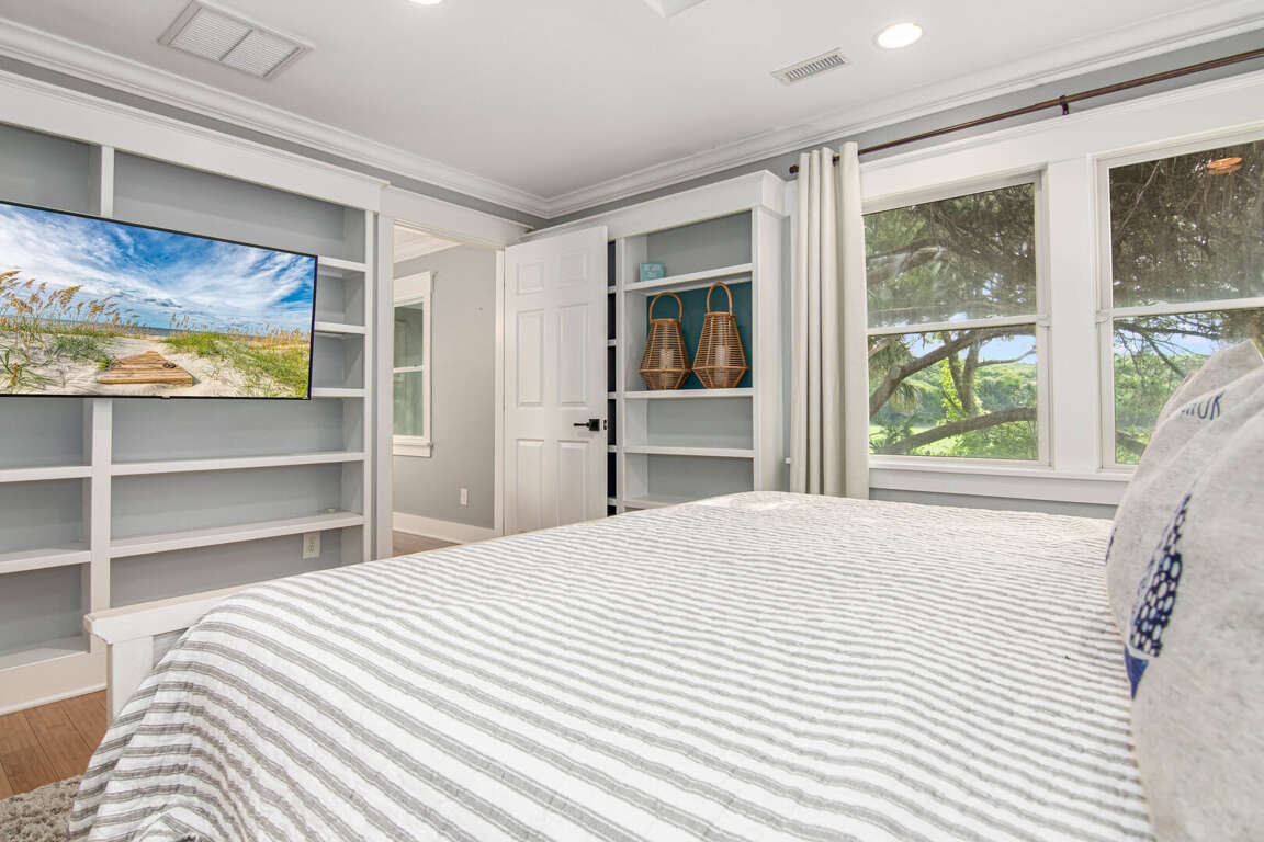 Get ready to fall in love with our five-bedroom golf course view home, 'Coast is Clear'! Nestled at the end of a cul-de-sac, it offers stunning views of BHI's nature lagoon and golf course. The main living area upstairs boasts a large kitchen and living space, perfect for family hangouts on the spacious deck. One side has a queen room and a twin room sharing a hall bath, plus a king bedroom with its own bath and private deck access. The other side features a cozy living area with a pull-out sofa and another king bedroom with a private bath. Downstairs is a kid's paradise with queen bunk beds and multiple TVs! Explore the island in style with our 6-passenger Bintelli golf carts and enjoy access to the BHI club for an extra fee. Don't miss out on this dream vacation spot!<br />