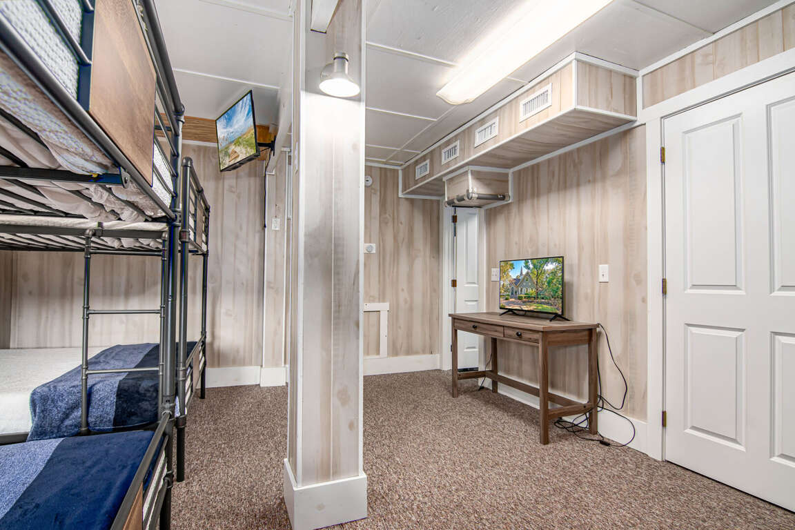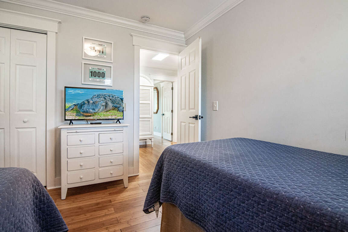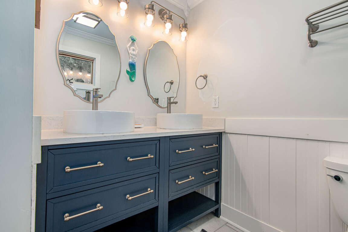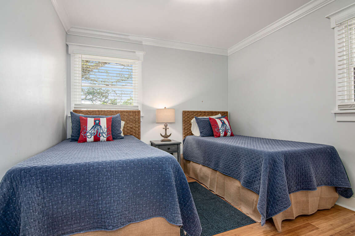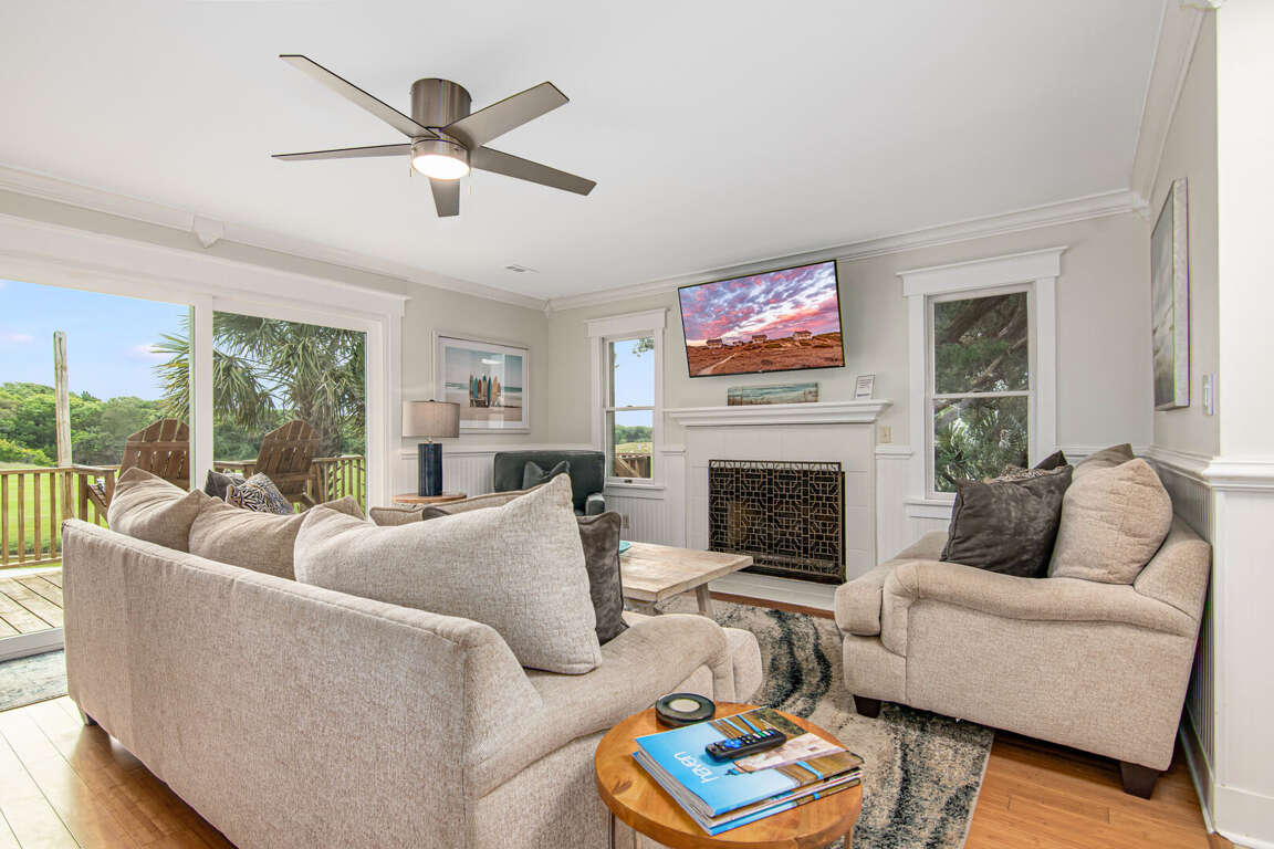 Get ready to fall in love with our five-bedroom golf course view home, 'Coast is Clear'! Nestled at the end of a cul-de-sac, it offers stunning views of BHI's nature lagoon and golf course. The main living area upstairs boasts a large kitchen and living space, perfect for family hangouts on the spacious deck. One side has a queen room and a twin room sharing a hall bath, plus a king bedroom with its own bath and private deck access. The other side features a cozy living area with a pull-out sofa and another king bedroom with a private bath. Downstairs is a kid's paradise with queen bunk beds and multiple TVs! Explore the island in style with our 6-passenger Bintelli golf carts and enjoy access to the BHI club for an extra fee. Don't miss out on this dream vacation spot!<br />