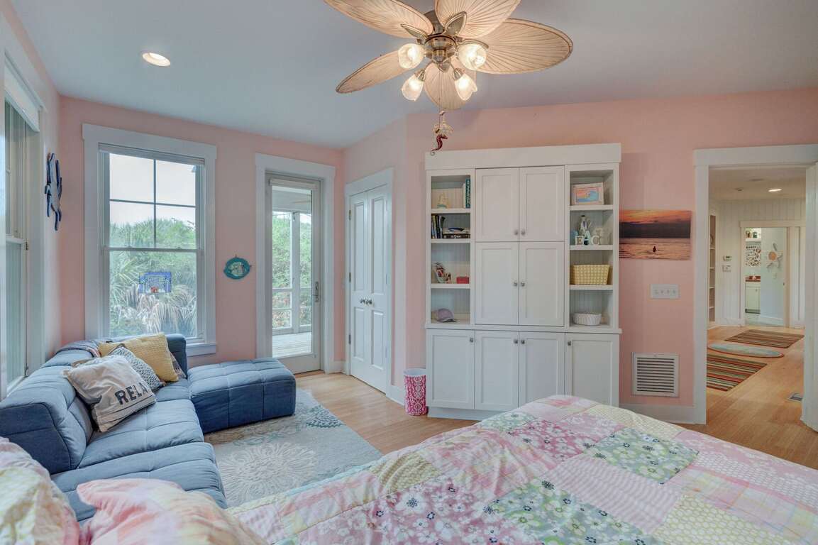 The downstairs features a bedroom with a twin bed with trundle, perfect for children. Down the hall, you'll find a double size murphy bedroom. The third downstairs room offers a second living area with a sectional pull-out sofa.<br />