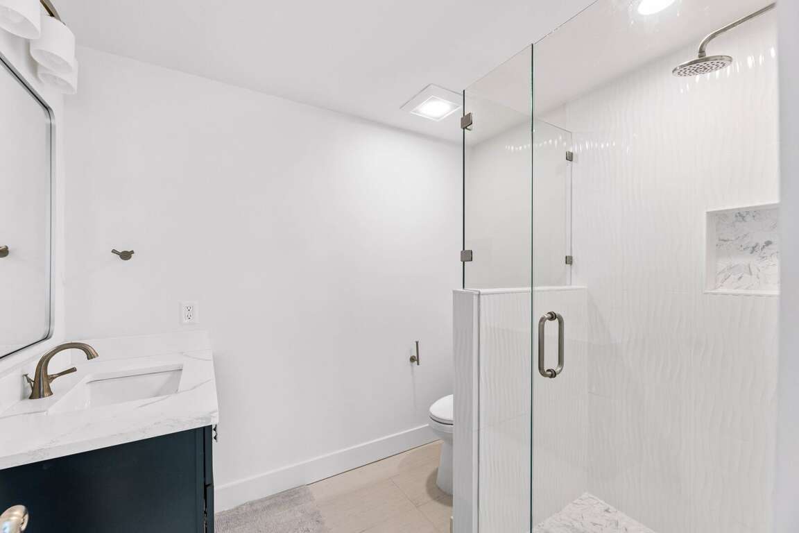 The main level features an inviting, open-concept living area with a well-appointed living room, a fully equipped kitchen, and a comfortable dining space. Step through the sliding glass door onto a spacious deck, complete with ample outdoor seating, ideal for relaxation. This level also includes two bedrooms, each with a king-size bed and a en-suite bathroom.<br />