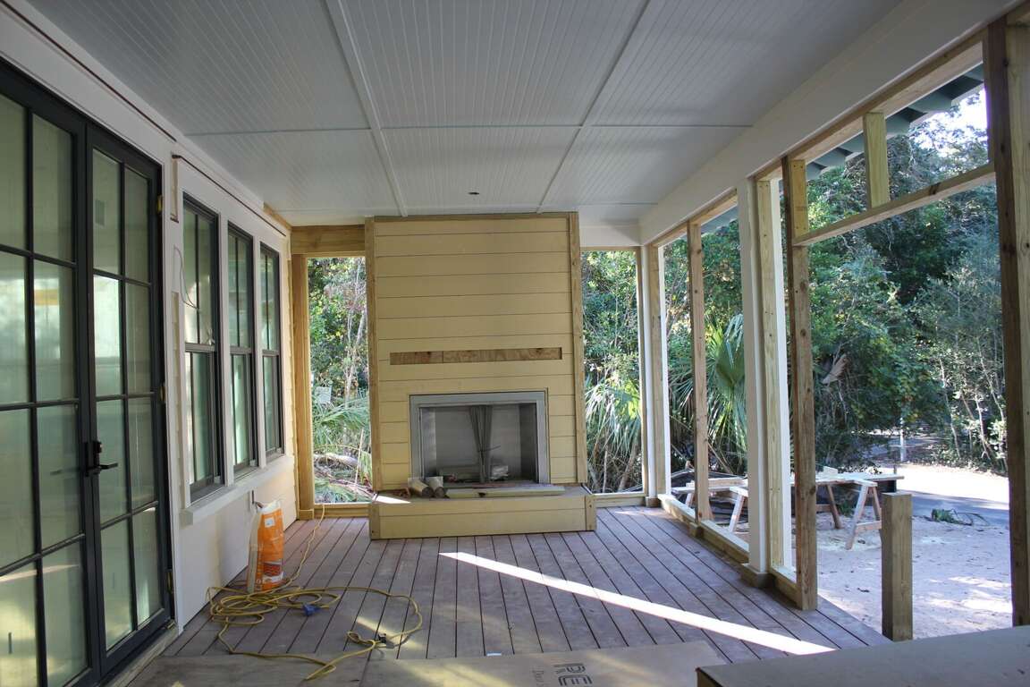 deck with 4 4-burner propane grill, a large rear screened porch with a gas fireplace (operable<br />