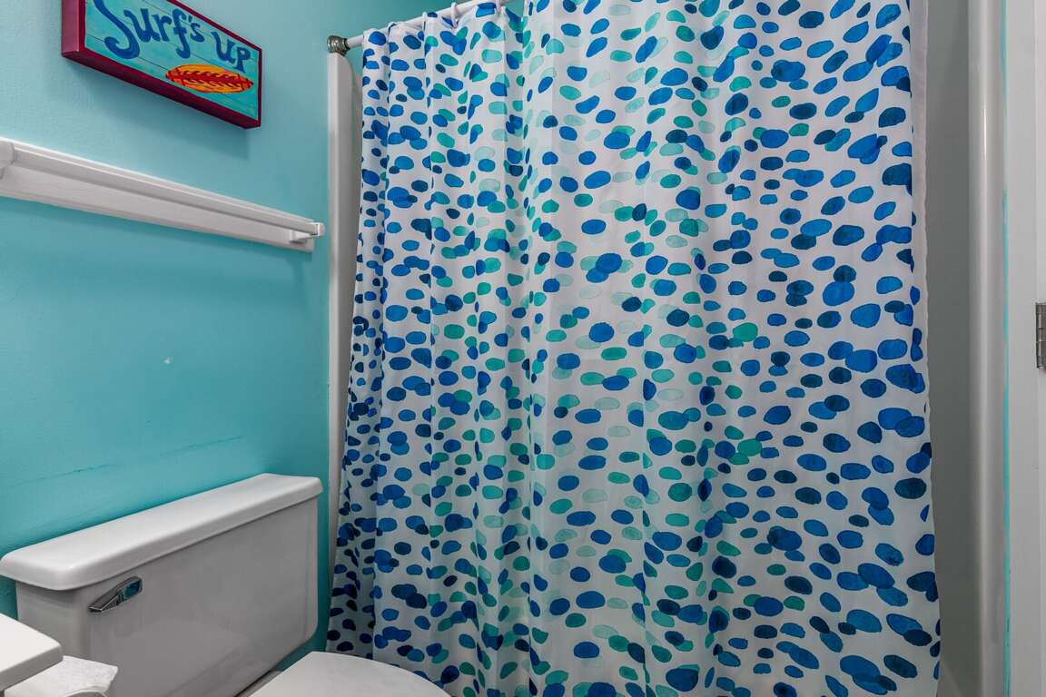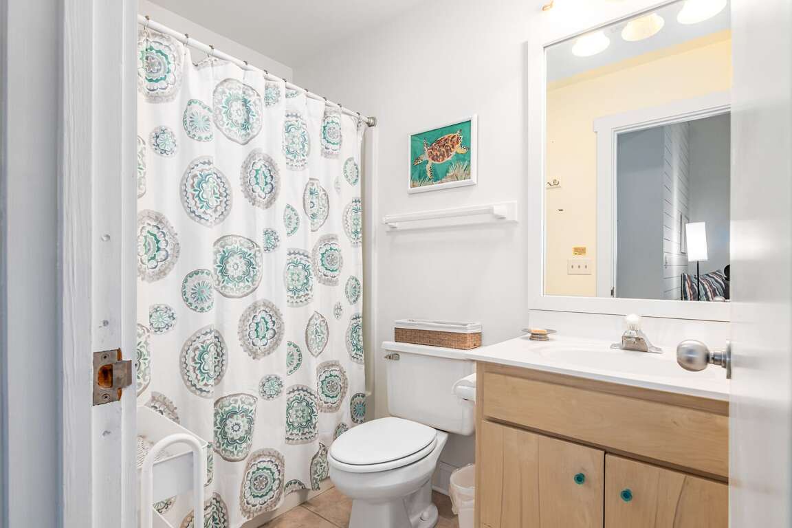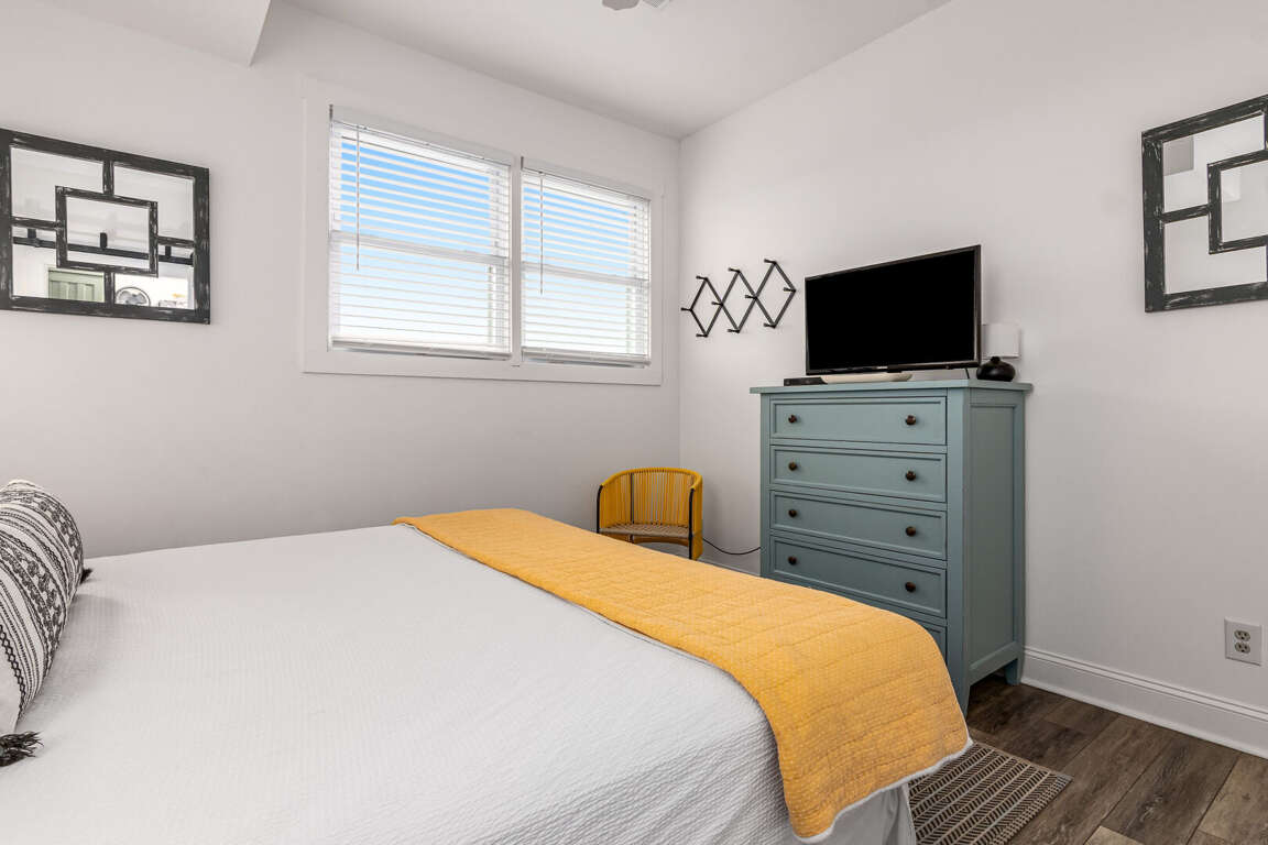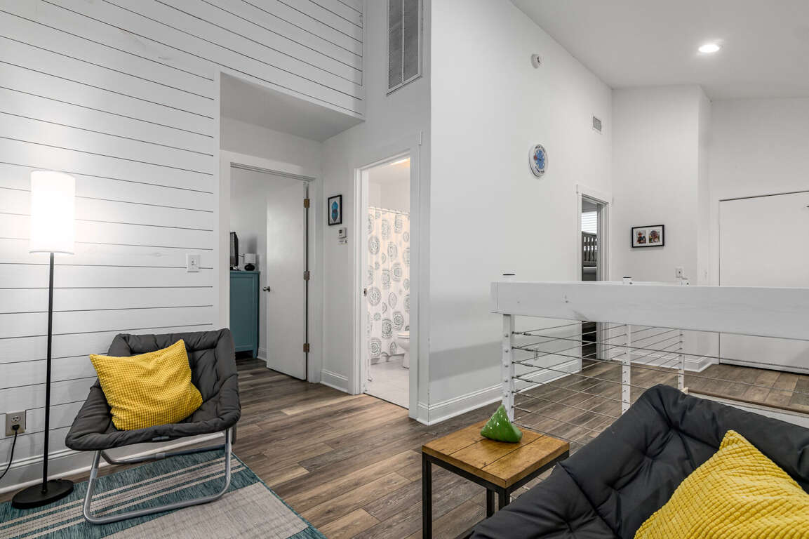 Step into the main living area, where you’ll find a welcoming space with comfortable seating — perfect for relaxing after a day at the beach. The primary suite is conveniently located on this level and features a king bed and a private bathroom with a shower/tub combination. Just off the living area, the kitchen is well-situated for easy access and includes a nearby half bath for added convenience.<br />