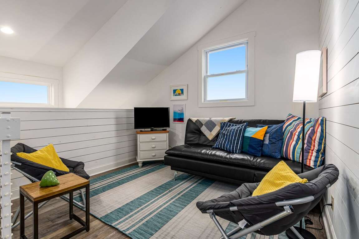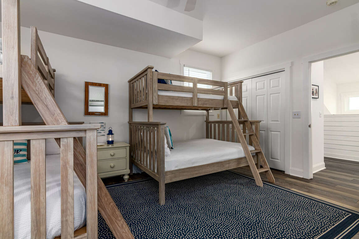 Upstairs, you’ll find two additional bedrooms. One bedroom is ideal for families or groups, offering two bunk beds (each with a double on the bottom and twin on top) and a private bathroom with a shower/tub combo. Down the hall, the second upstairs bedroom features a king bed and access to a hall bathroom, also with a shower/tub combination.<br />