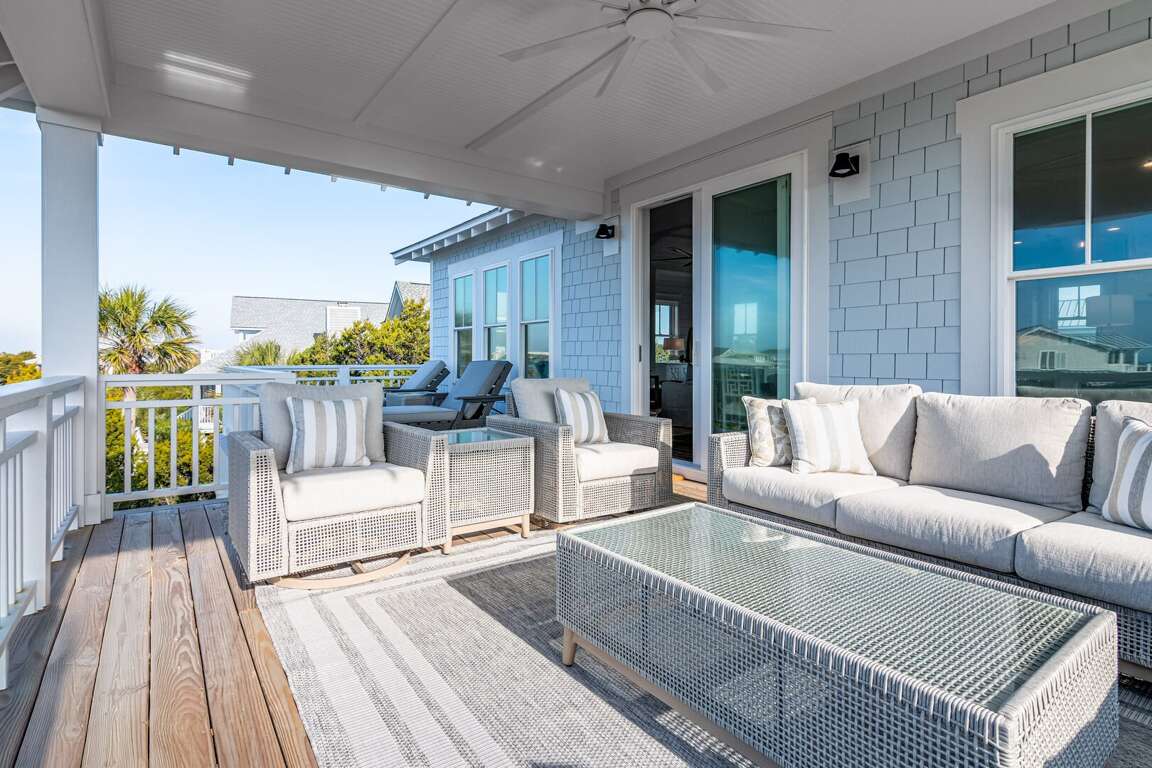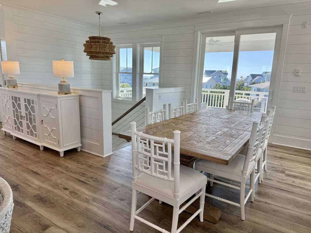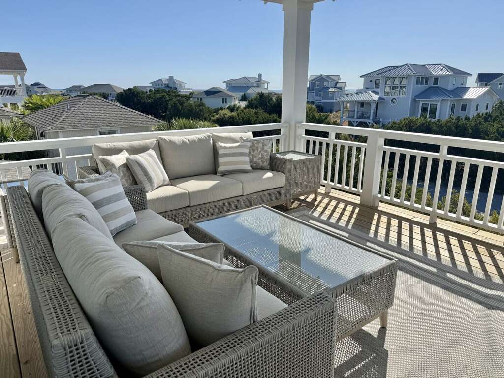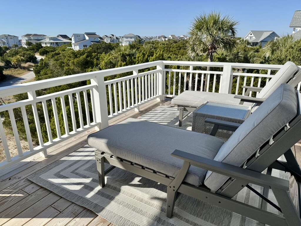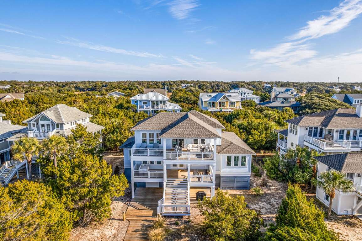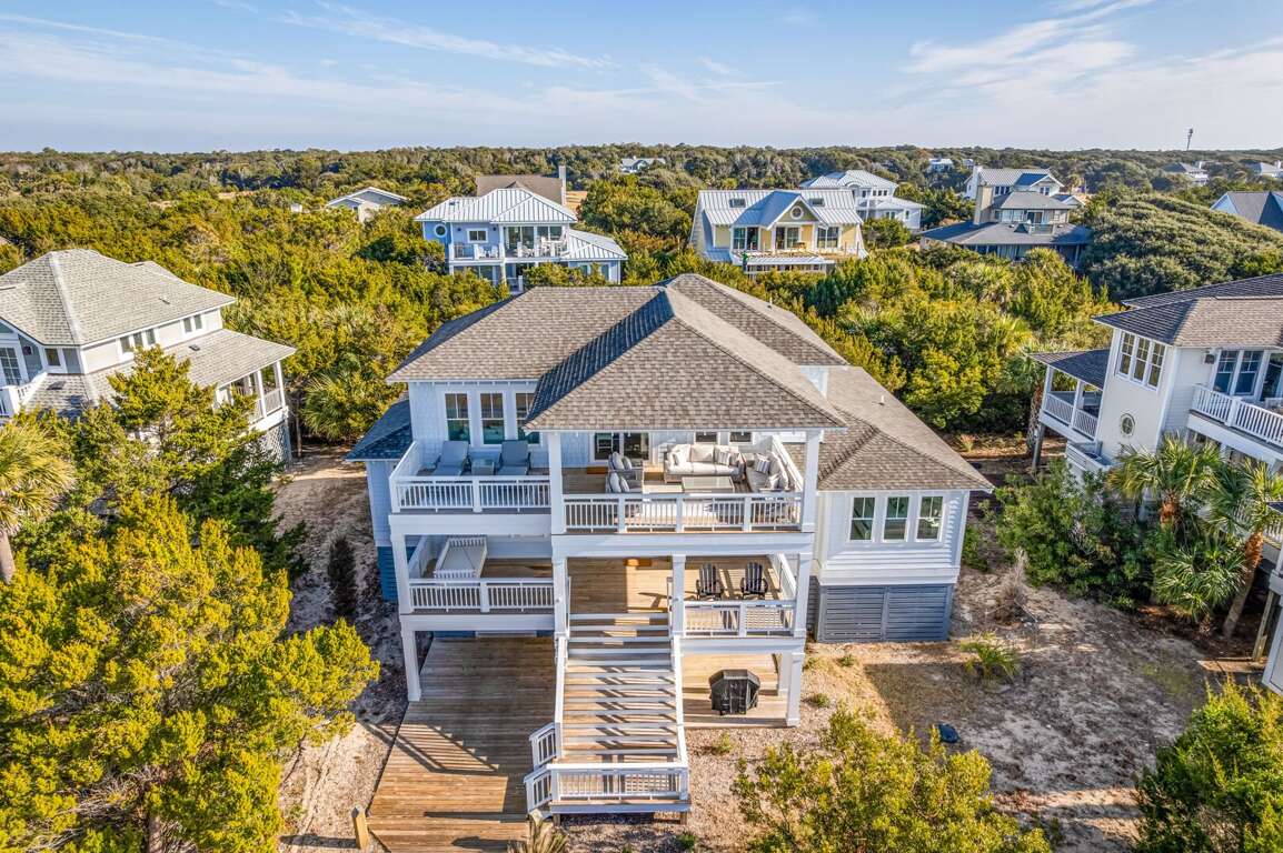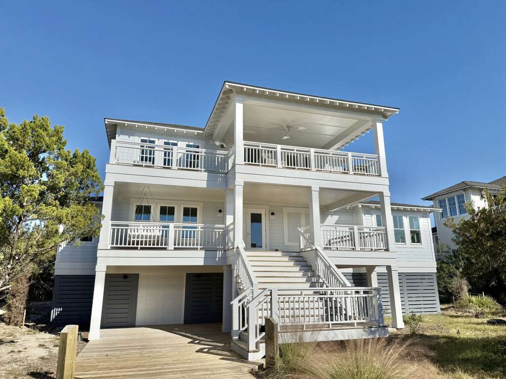 We are excited to invite you to book your next unforgettable family vacation at Rest Ashored! This five-bedroom home is meticulously designed to provide everything you need for a perfect stay. Upon entering, you will find all five bedrooms conveniently located on the ground floor. Three of the bedrooms feature private, attached bathrooms, while the remaining two share a spacious hall bath. The upper level boasts an expansive and light-filled main living floor. This level features a large chef’s kitchen equipped with all new appliances. The comfortable living space includes a large mounted TV, perfect for family movie nights. Enjoy the natural light streaming in through the large windows, which offer picturesque views of South Bald Head, including glimpses of the ocean. Step out onto the large back deck to enjoy the island breeze. The deck is furnished with a comfortable sofa set and lounge chairs, providing an ideal spot to relax and soak up the sunshine.<br />