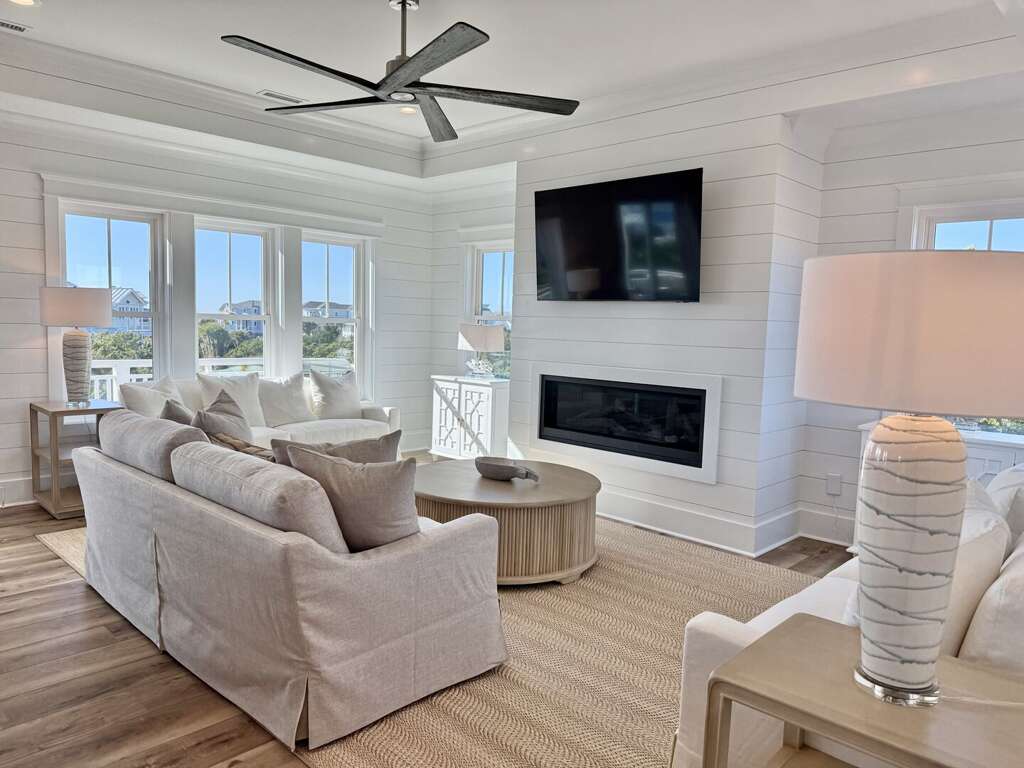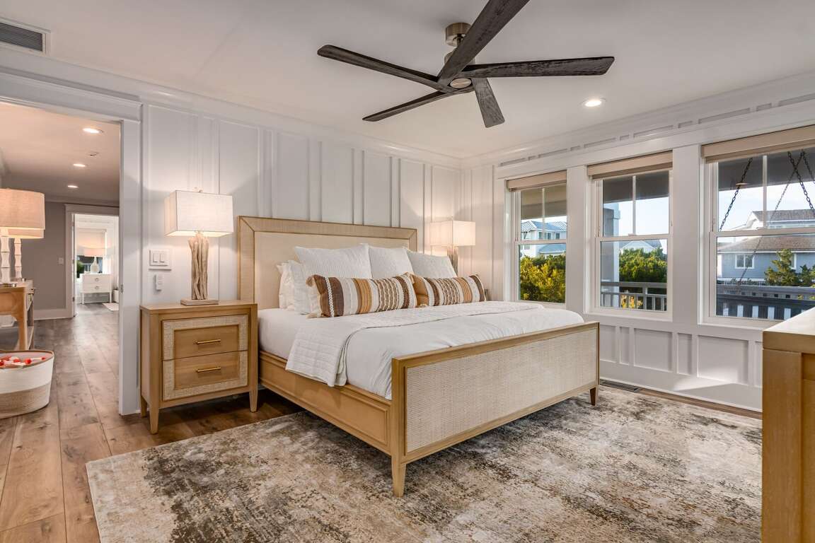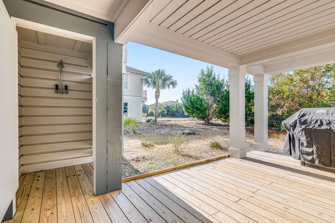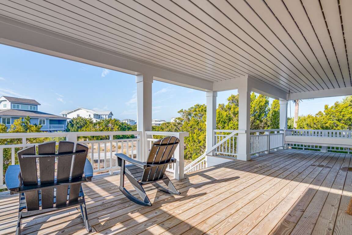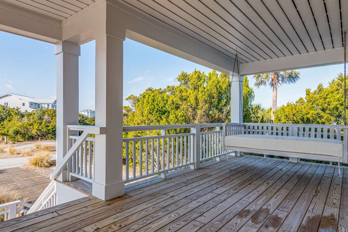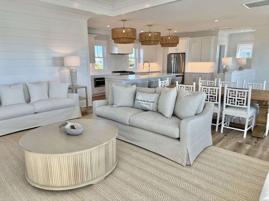 We are excited to invite you to book your next unforgettable family vacation at Rest Ashored! This five-bedroom home is meticulously designed to provide everything you need for a perfect stay. Upon entering, you will find all five bedrooms conveniently located on the ground floor. Three of the bedrooms feature private, attached bathrooms, while the remaining two share a spacious hall bath. The upper level boasts an expansive and light-filled main living floor. This level features a large chef’s kitchen equipped with all new appliances. The comfortable living space includes a large mounted TV, perfect for family movie nights. Enjoy the natural light streaming in through the large windows, which offer picturesque views of South Bald Head, including glimpses of the ocean. Step out onto the large back deck to enjoy the island breeze. The deck is furnished with a comfortable sofa set and lounge chairs, providing an ideal spot to relax and soak up the sunshine.<br />