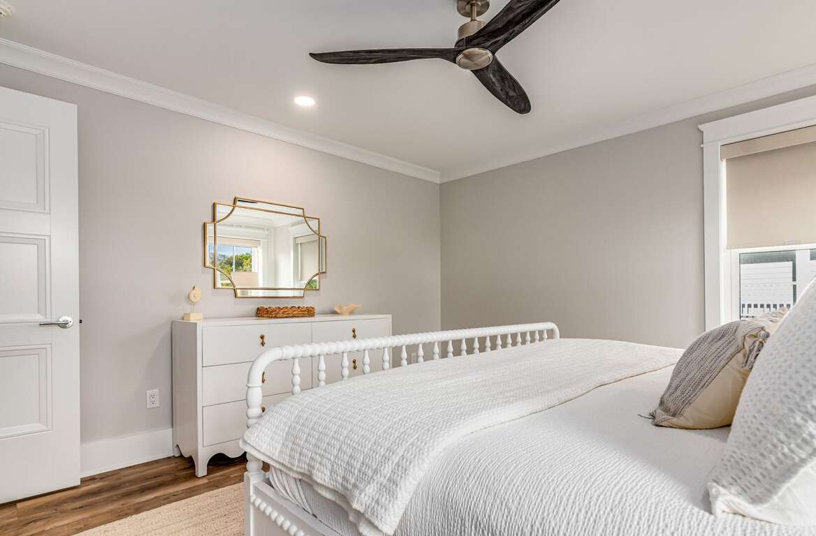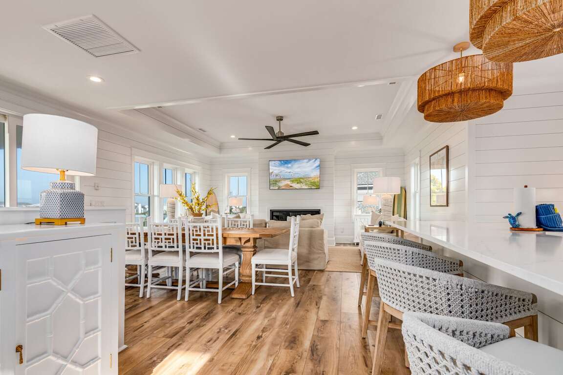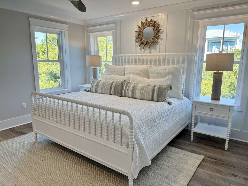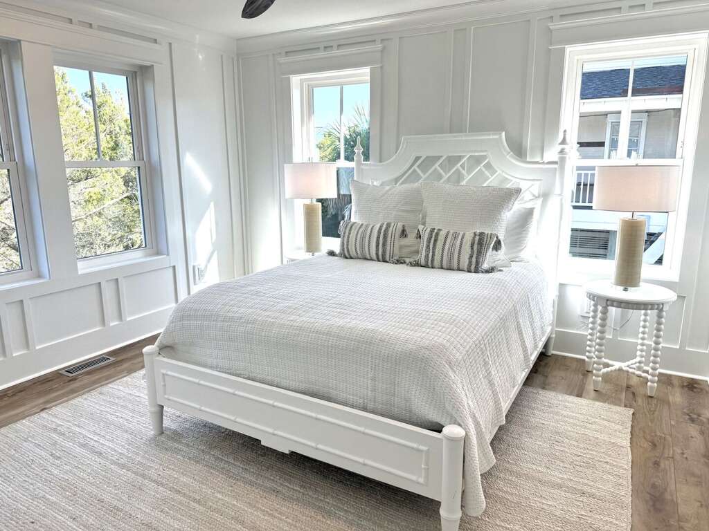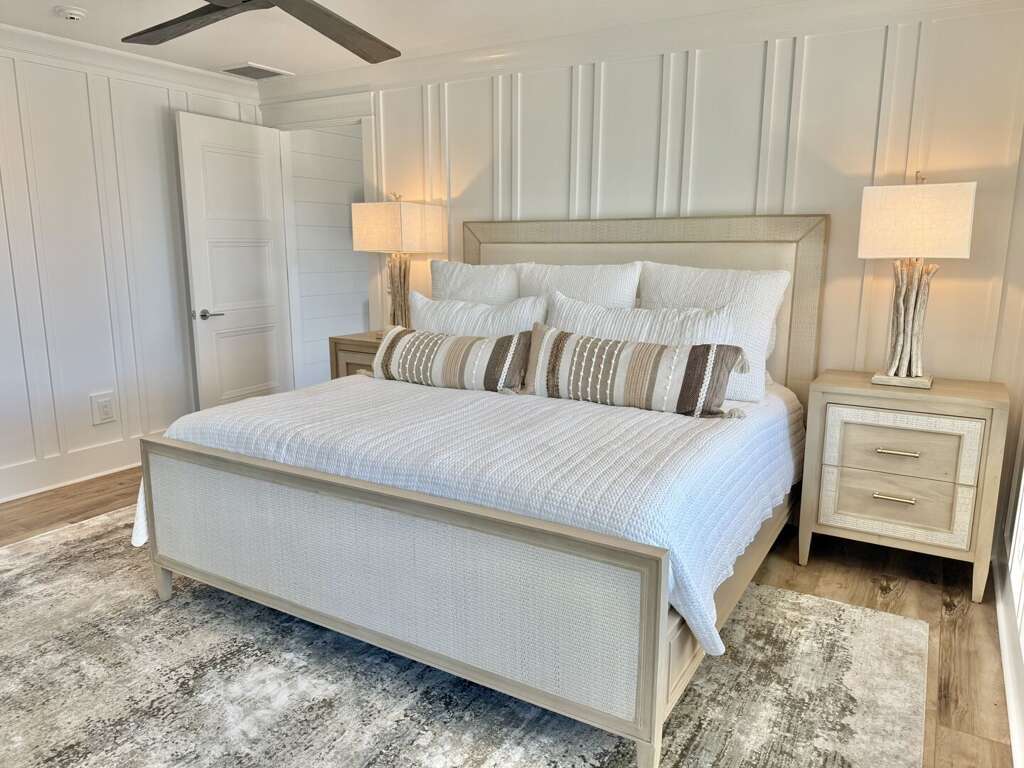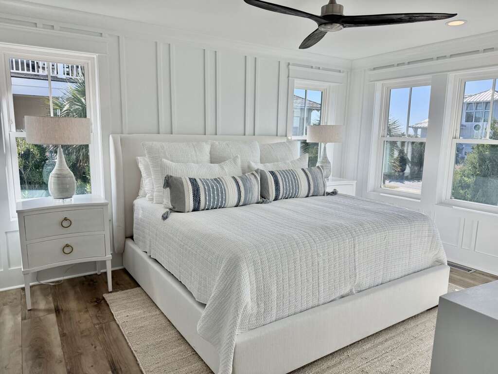 We are excited to invite you to book your next unforgettable family vacation at Rest Ashored! This five-bedroom home is meticulously designed to provide everything you need for a perfect stay. Upon entering, you will find all five bedrooms conveniently located on the ground floor. Three of the bedrooms feature private, attached bathrooms, while the remaining two share a spacious hall bath. The upper level boasts an expansive and light-filled main living floor. This level features a large chef’s kitchen equipped with all new appliances. The comfortable living space includes a large mounted TV, perfect for family movie nights. Enjoy the natural light streaming in through the large windows, which offer picturesque views of South Bald Head, including glimpses of the ocean. Step out onto the large back deck to enjoy the island breeze. The deck is furnished with a comfortable sofa set and lounge chairs, providing an ideal spot to relax and soak up the sunshine.<br />