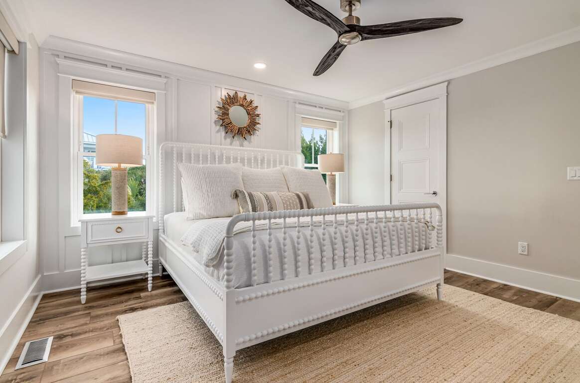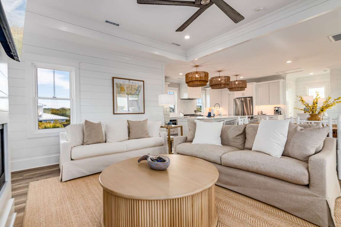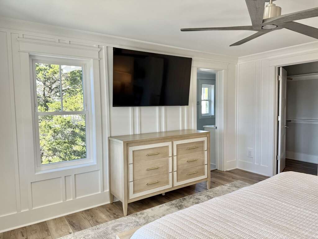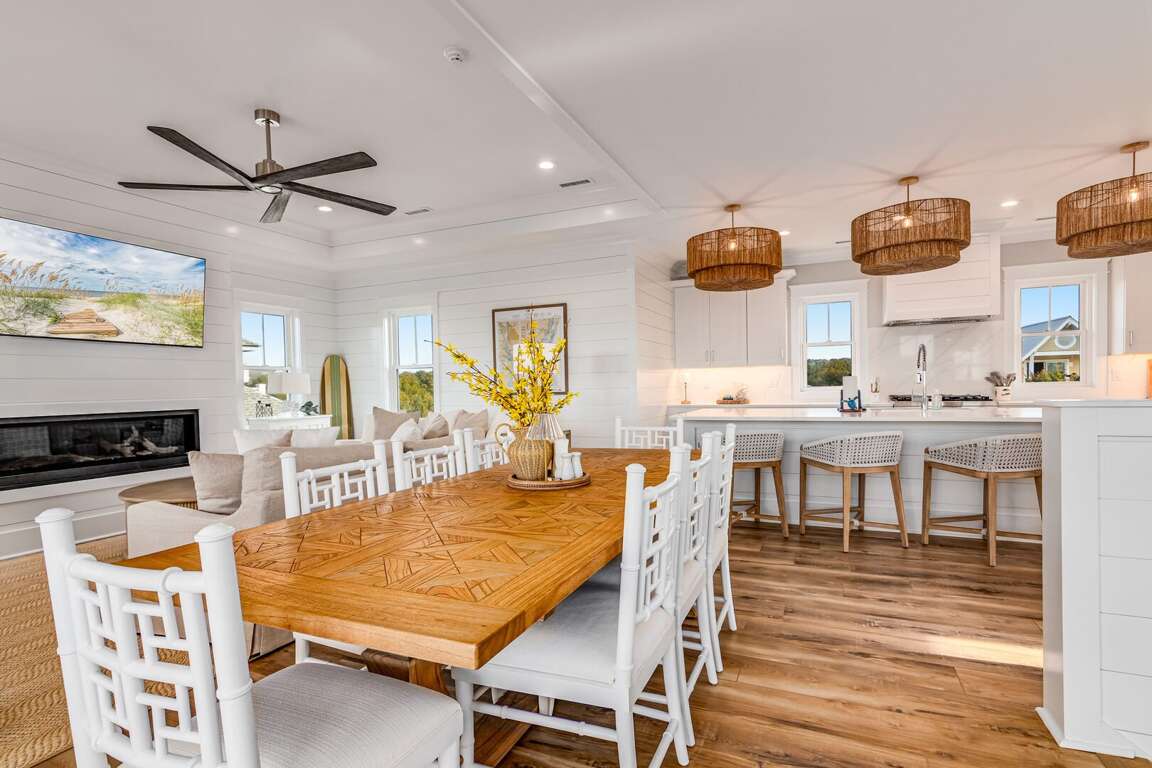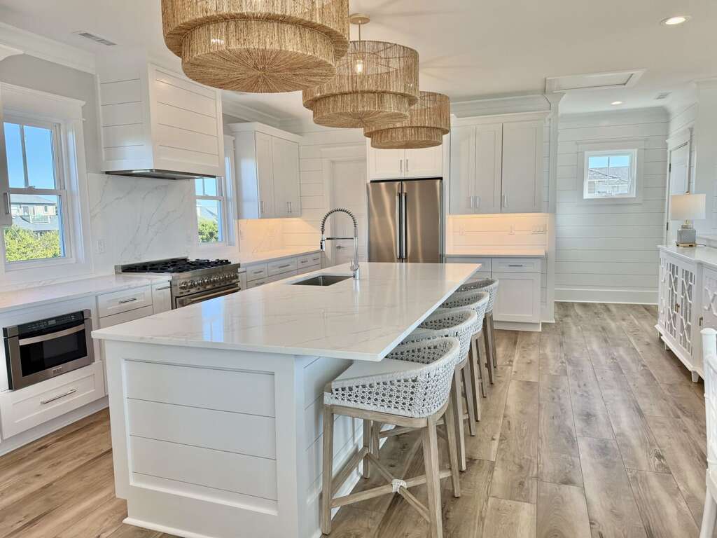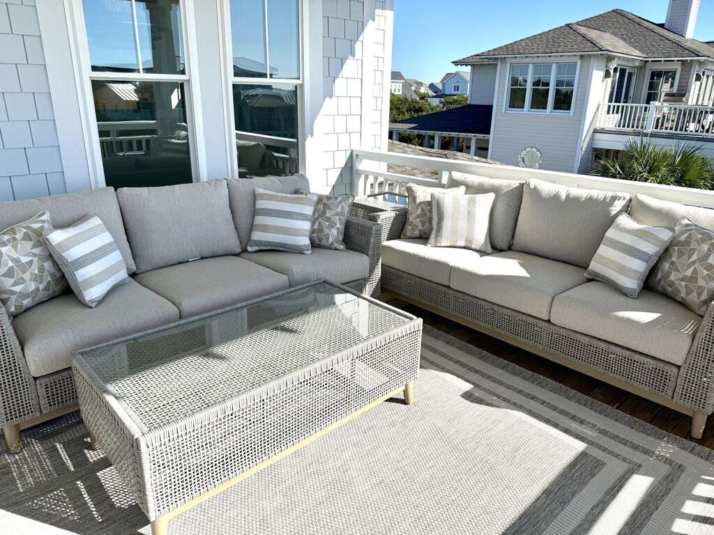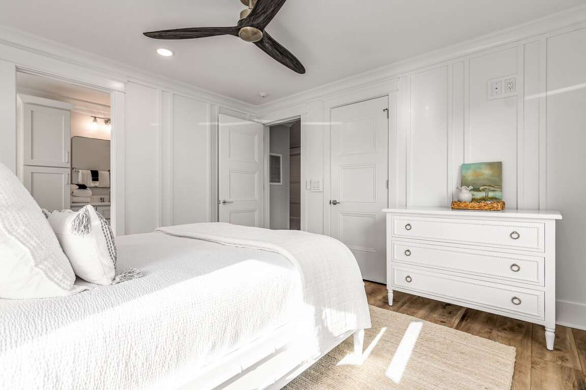 We are excited to invite you to book your next unforgettable family vacation at Rest Ashored! This five-bedroom home is meticulously designed to provide everything you need for a perfect stay. Upon entering, you will find all five bedrooms conveniently located on the ground floor. Three of the bedrooms feature private, attached bathrooms, while the remaining two share a spacious hall bath. The upper level boasts an expansive and light-filled main living floor. This level features a large chef’s kitchen equipped with all new appliances. The comfortable living space includes a large mounted TV, perfect for family movie nights. Enjoy the natural light streaming in through the large windows, which offer picturesque views of South Bald Head, including glimpses of the ocean. Step out onto the large back deck to enjoy the island breeze. The deck is furnished with a comfortable sofa set and lounge chairs, providing an ideal spot to relax and soak up the sunshine.<br />