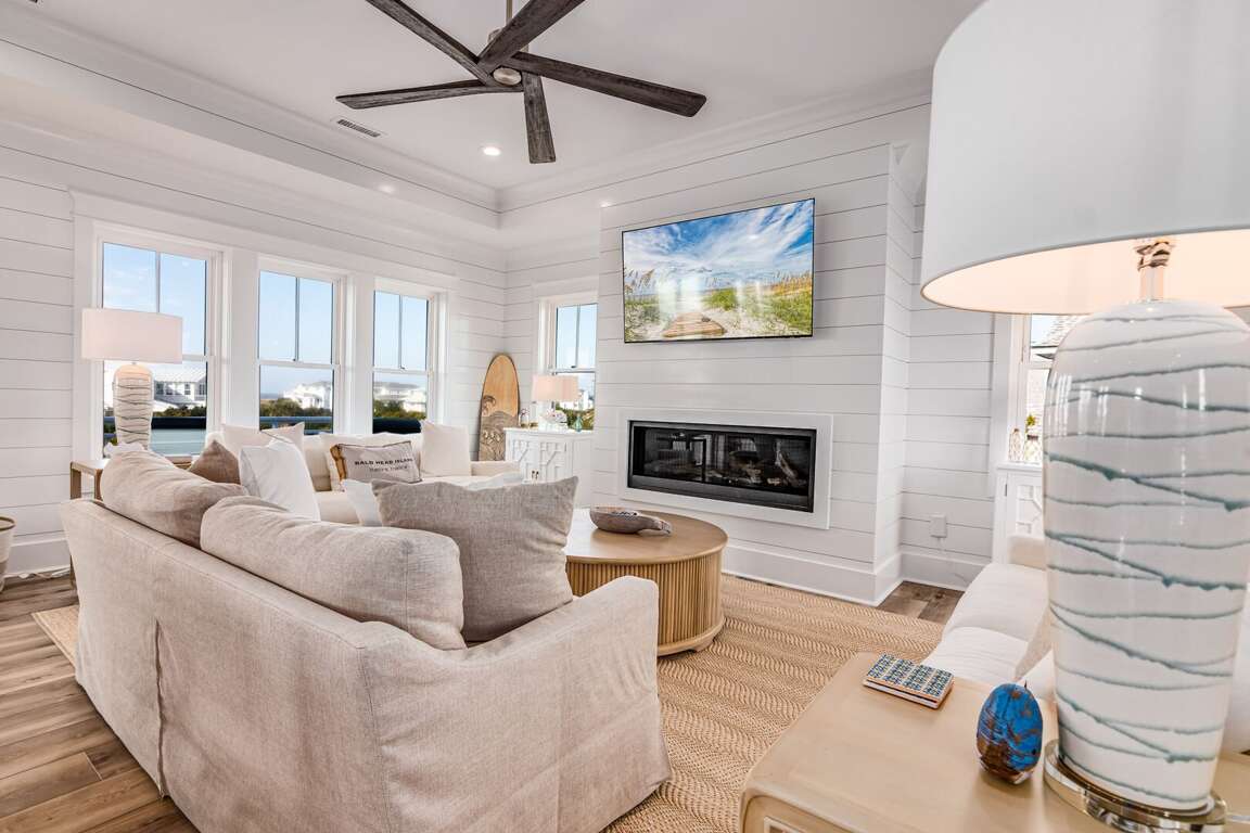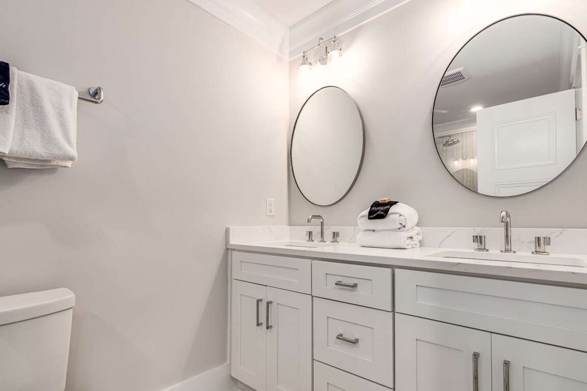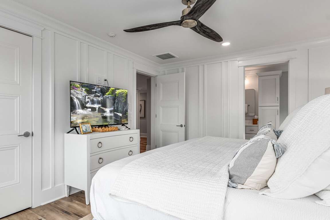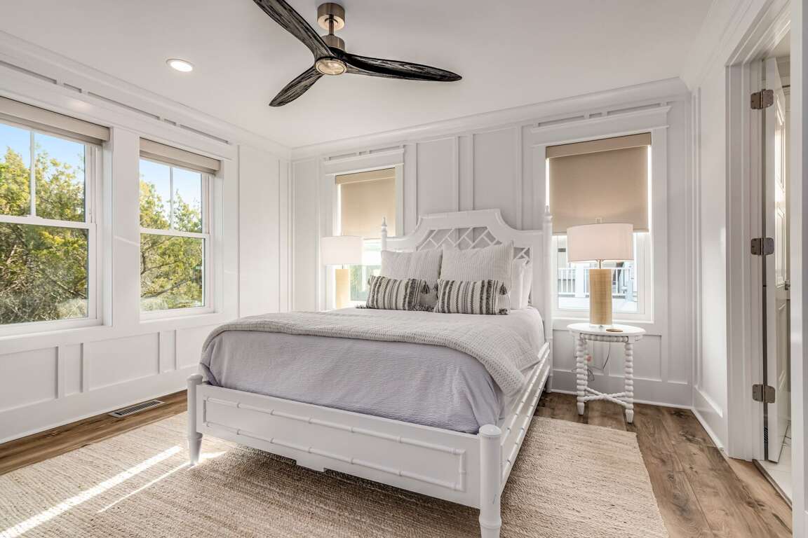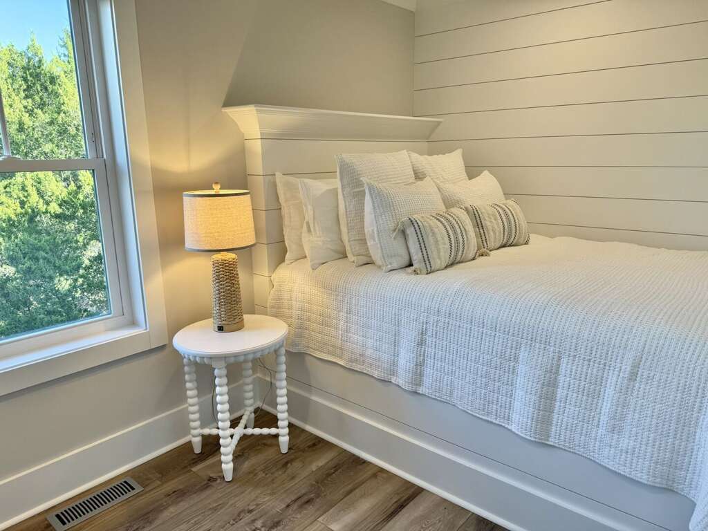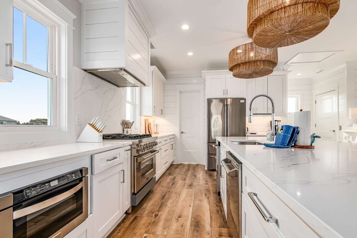 We are excited to invite you to book your next unforgettable family vacation at Rest Ashored! This five-bedroom home is meticulously designed to provide everything you need for a perfect stay. Upon entering, you will find all five bedrooms conveniently located on the ground floor. Three of the bedrooms feature private, attached bathrooms, while the remaining two share a spacious hall bath. The upper level boasts an expansive and light-filled main living floor. This level features a large chef’s kitchen equipped with all new appliances. The comfortable living space includes a large mounted TV, perfect for family movie nights. Enjoy the natural light streaming in through the large windows, which offer picturesque views of South Bald Head, including glimpses of the ocean. Step out onto the large back deck to enjoy the island breeze. The deck is furnished with a comfortable sofa set and lounge chairs, providing an ideal spot to relax and soak up the sunshine.<br />