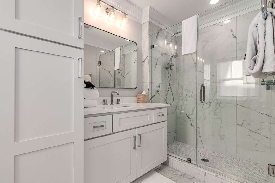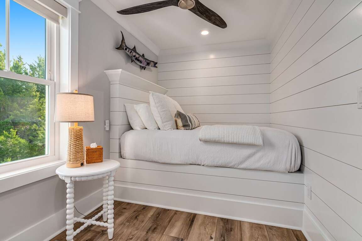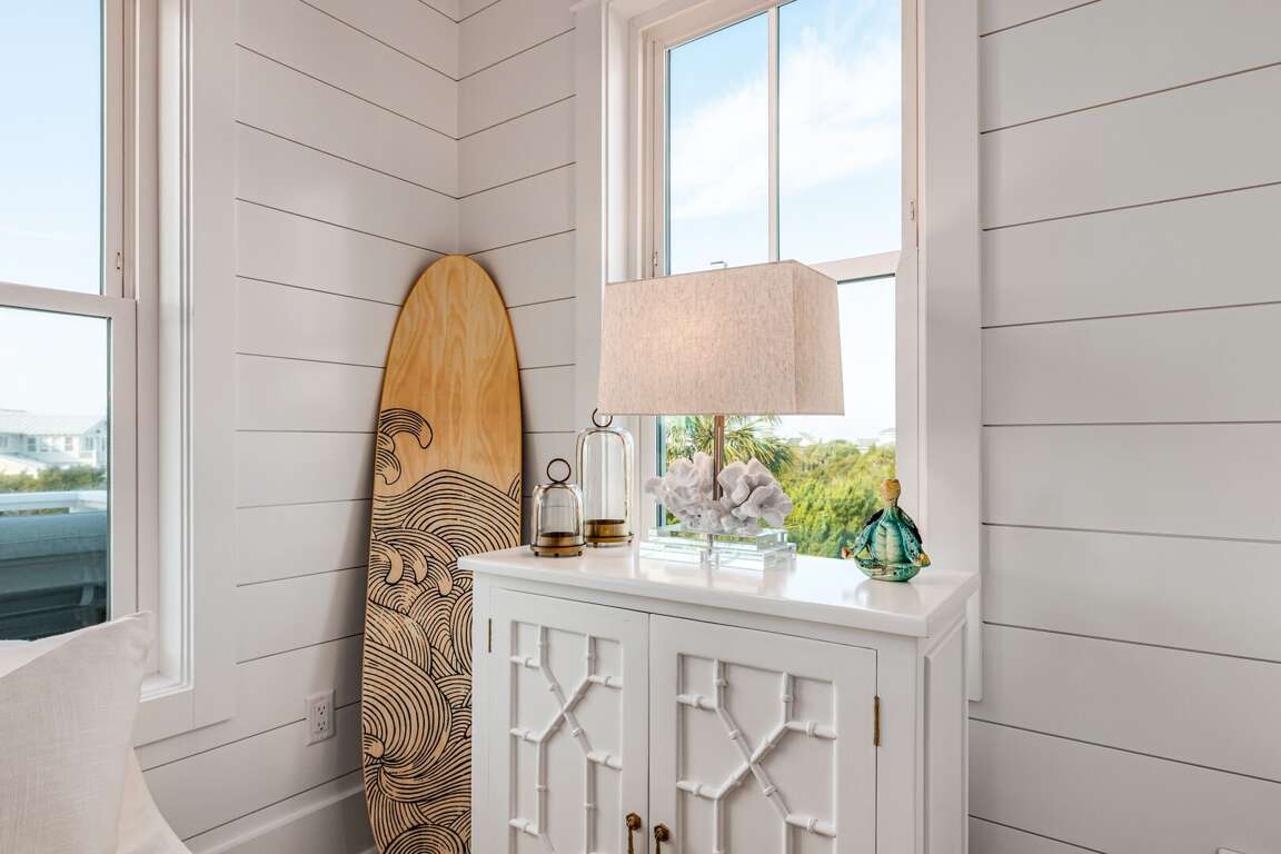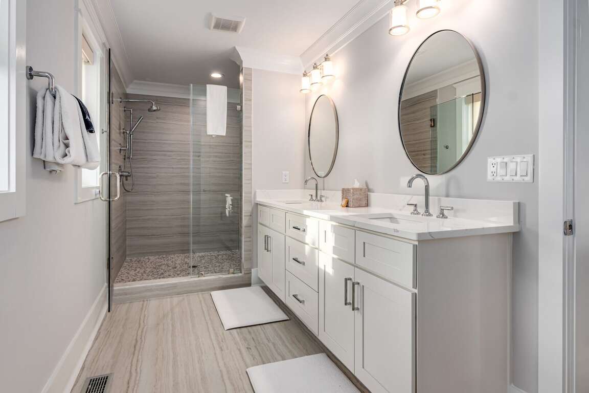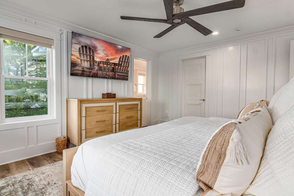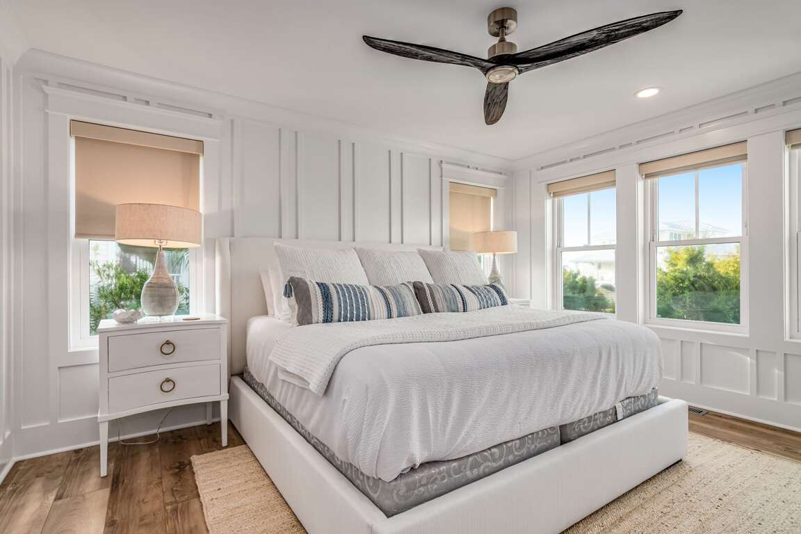 We are excited to invite you to book your next unforgettable family vacation at Rest Ashored! This five-bedroom home is meticulously designed to provide everything you need for a perfect stay. Upon entering, you will find all five bedrooms conveniently located on the ground floor. Three of the bedrooms feature private, attached bathrooms, while the remaining two share a spacious hall bath. The upper level boasts an expansive and light-filled main living floor. This level features a large chef’s kitchen equipped with all new appliances. The comfortable living space includes a large mounted TV, perfect for family movie nights. Enjoy the natural light streaming in through the large windows, which offer picturesque views of South Bald Head, including glimpses of the ocean. Step out onto the large back deck to enjoy the island breeze. The deck is furnished with a comfortable sofa set and lounge chairs, providing an ideal spot to relax and soak up the sunshine.<br />