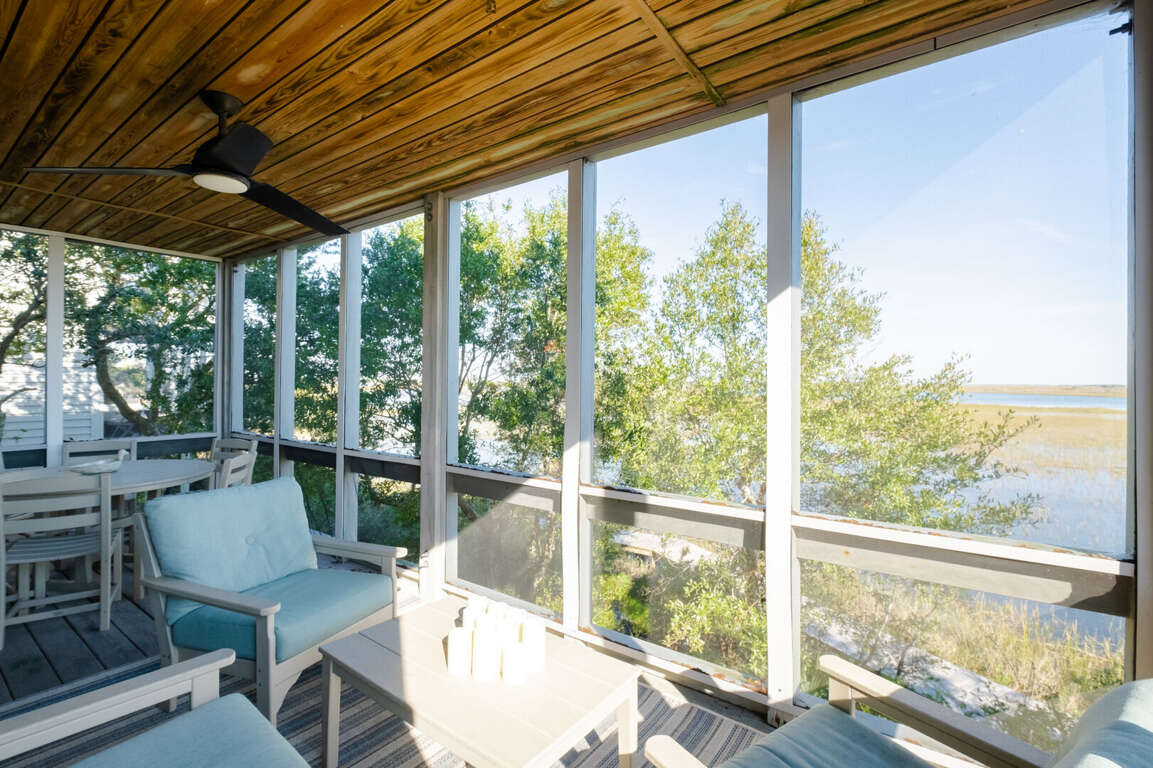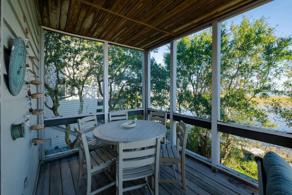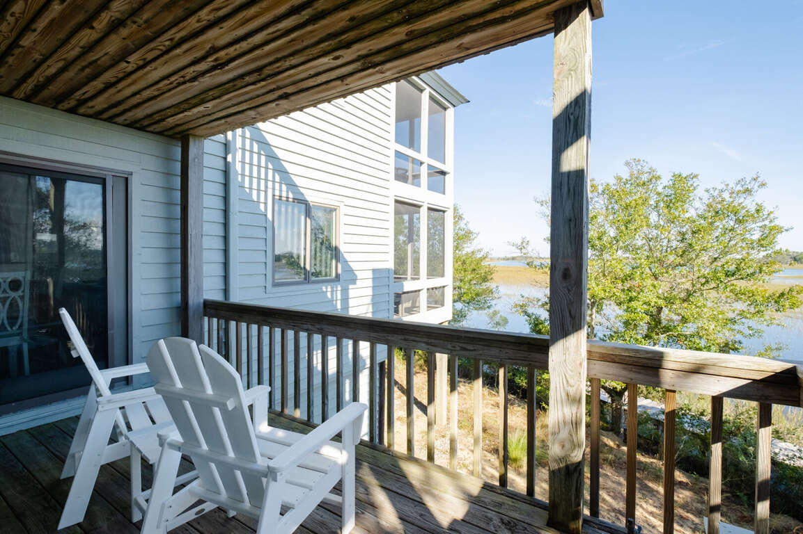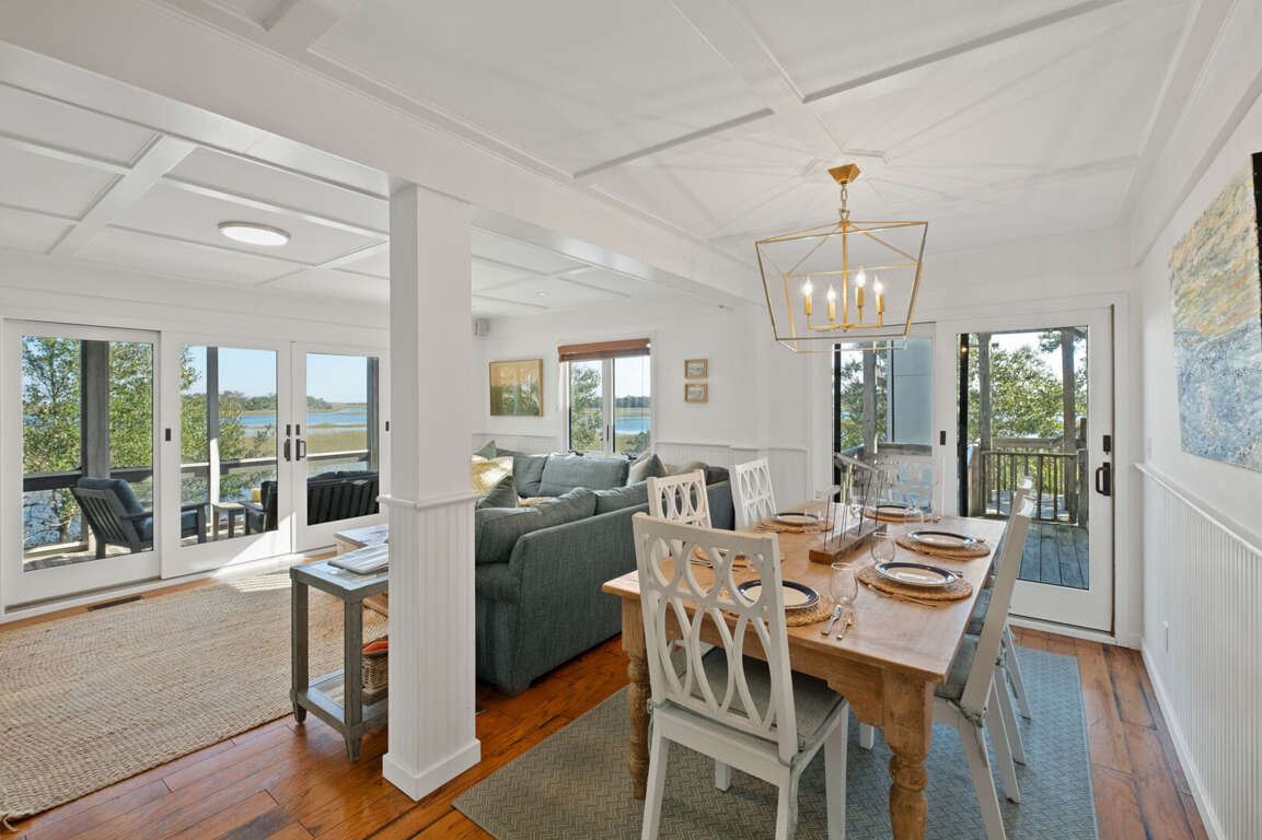 30 Knots exudes classic charm from its beautiful hardwoods to the living/dining areas, elegant wainscoting, and coffered ceiling. As you enter, the Bald Head Creek and marsh vistas through the walls of windows catch your eye. A decorative tiled fireplace anchors the open living area and provides egress to the room-length screen porch (which offers seating as well as al fresco dining-with-a-view). The adjacent light-filled indoor dining space comfortably accommodates six and accesses a covered deck-just the spot for morning coffee while watching the sunrise.<br />