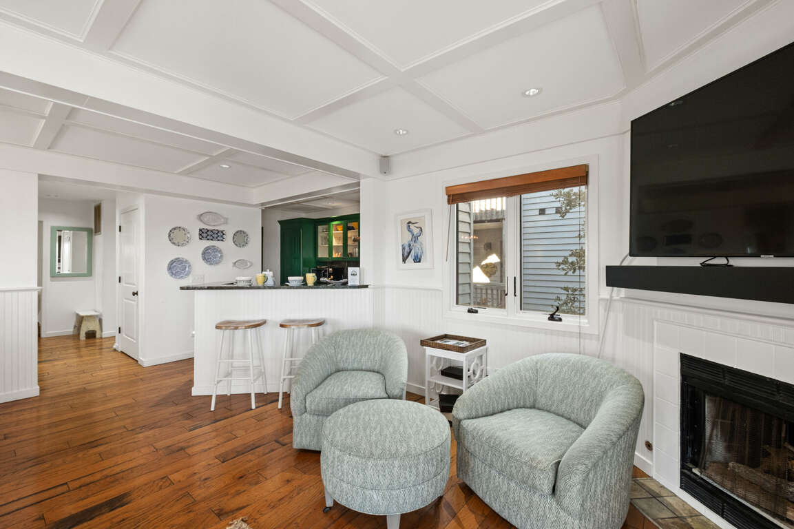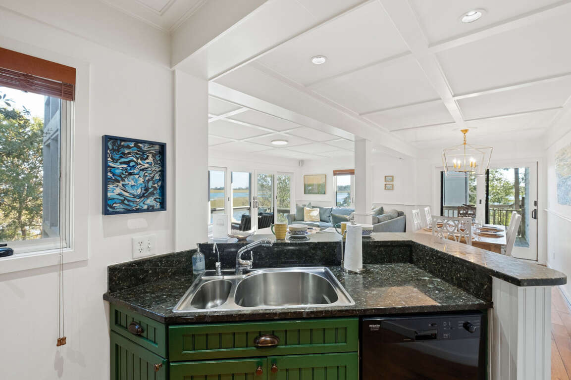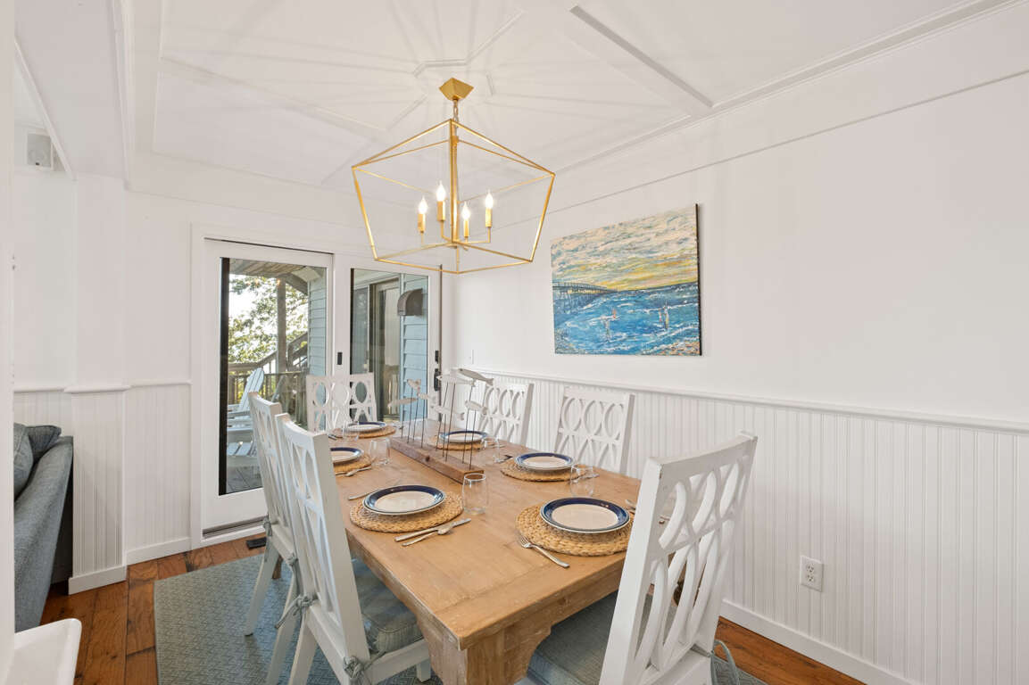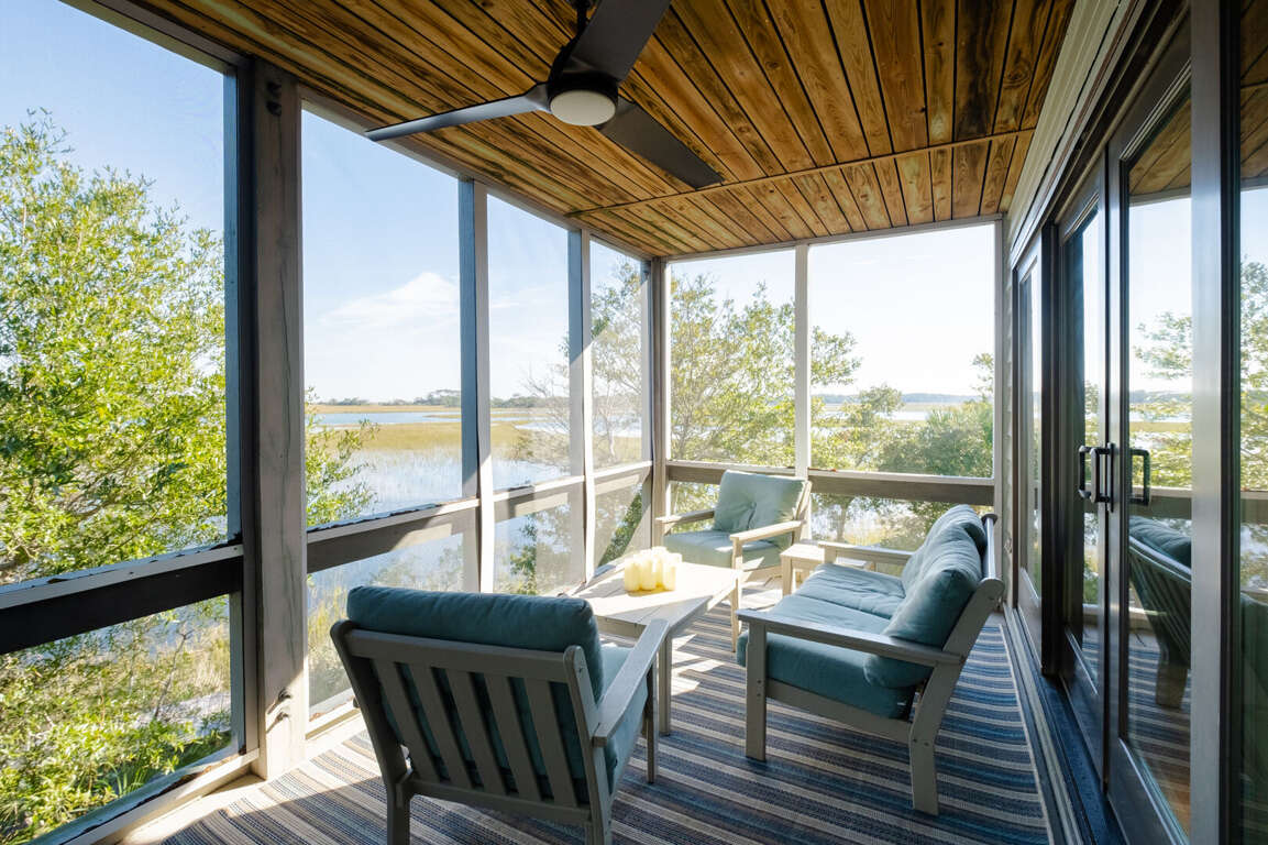 30 Knots exudes classic charm from its beautiful hardwoods to the living/dining areas, elegant wainscoting, and coffered ceiling. As you enter, the Bald Head Creek and marsh vistas through the walls of windows catch your eye. A decorative tiled fireplace anchors the open living area and provides egress to the room-length screen porch (which offers seating as well as al fresco dining-with-a-view). The adjacent light-filled indoor dining space comfortably accommodates six and accesses a covered deck-just the spot for morning coffee while watching the sunrise.<br />