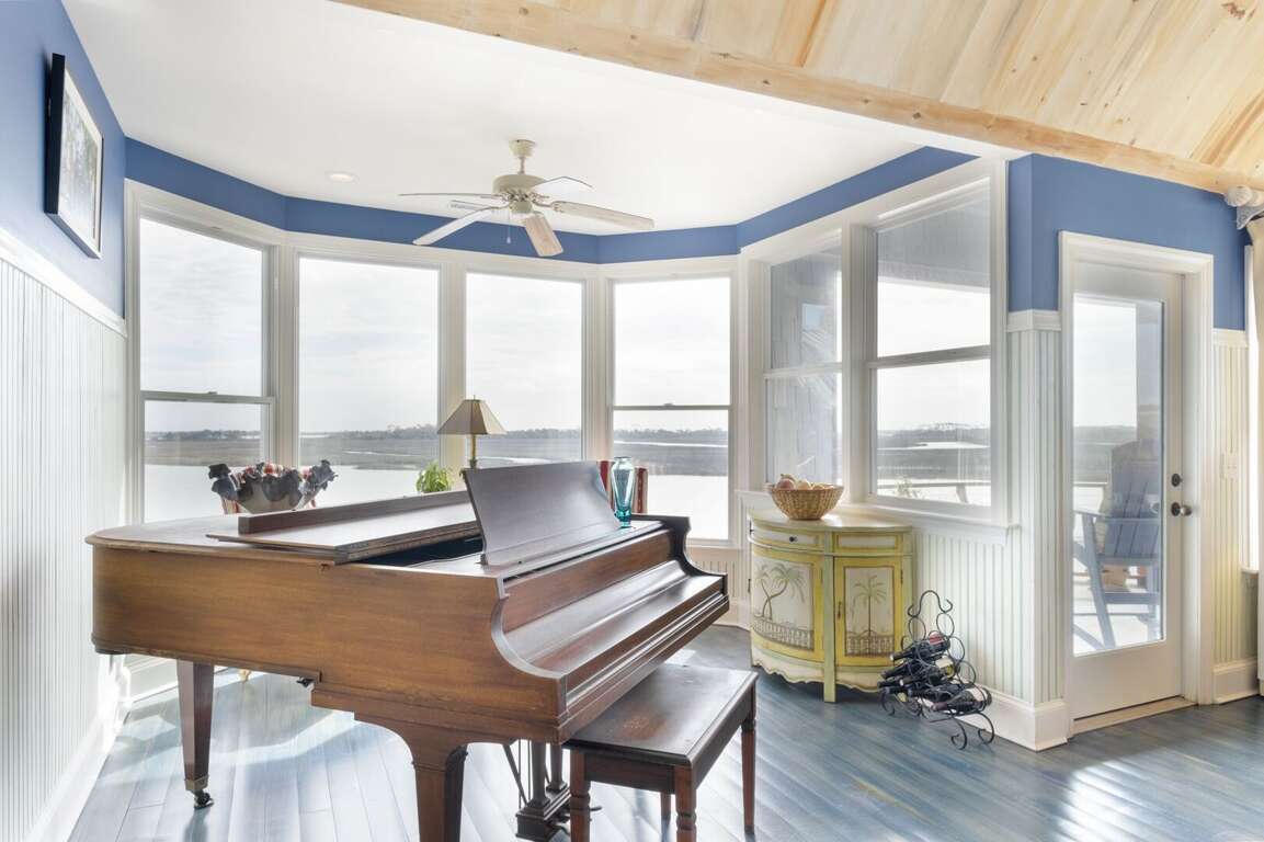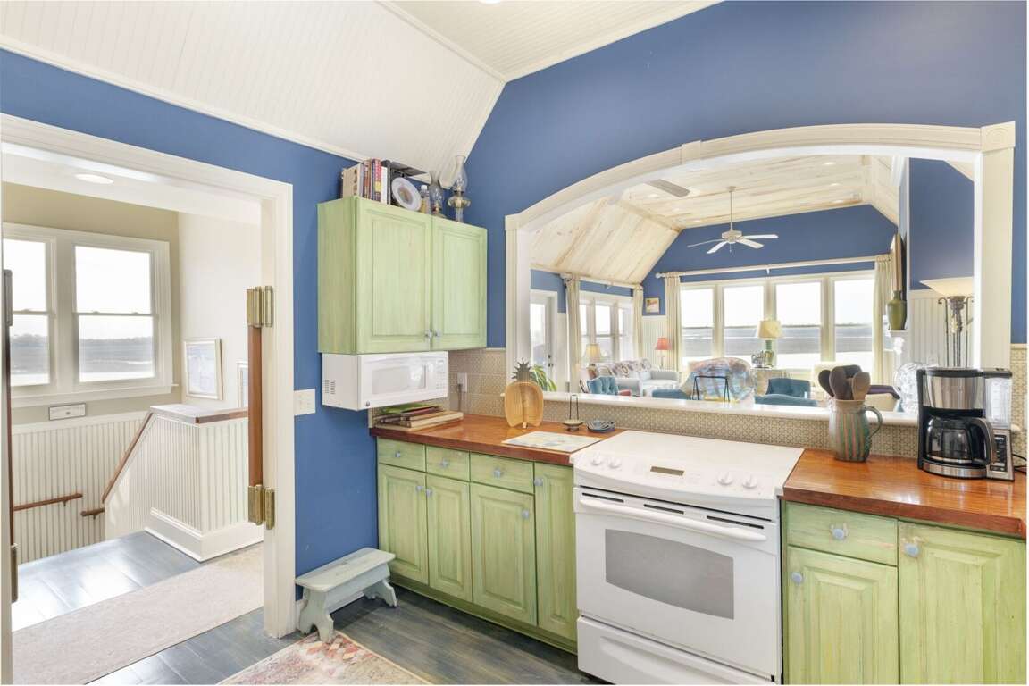 At the top of the stairs, a roomy kitchen overlooks the sun-drenched vaulted living and dining areas, which are surrounded by windows. A baby grand piano sits in a bright bay just across from the elegant dining space. Nearby, the generous living area, anchored by a slate fireplace, is very inviting, but what steals the show are the halcyon Island prospects everywhere you look. Savor these inside or on this level's bowed, semi-covered porch. It's an excellent place to watch the sunrise or relax with an afternoon treat, and it even renders glimpses all the way to Sunny Point! So ideally situated with proximity to the marina, shops, and restaurants, as well as providing a four-passenger cart. Au Beau Marais will assure you un Beau Moment (a good time) on your vacation! (The crofter is not part of the rental unit nor occupied.) <br />
