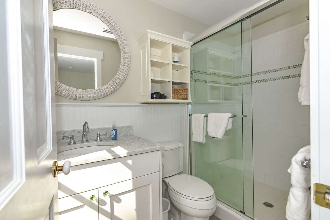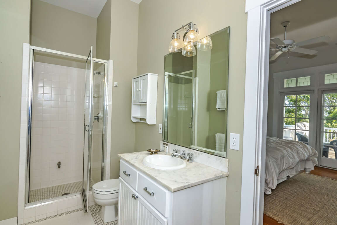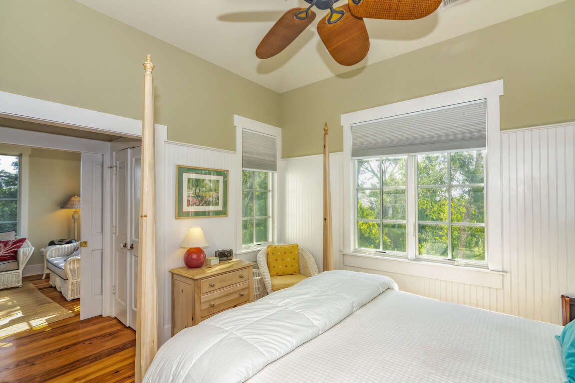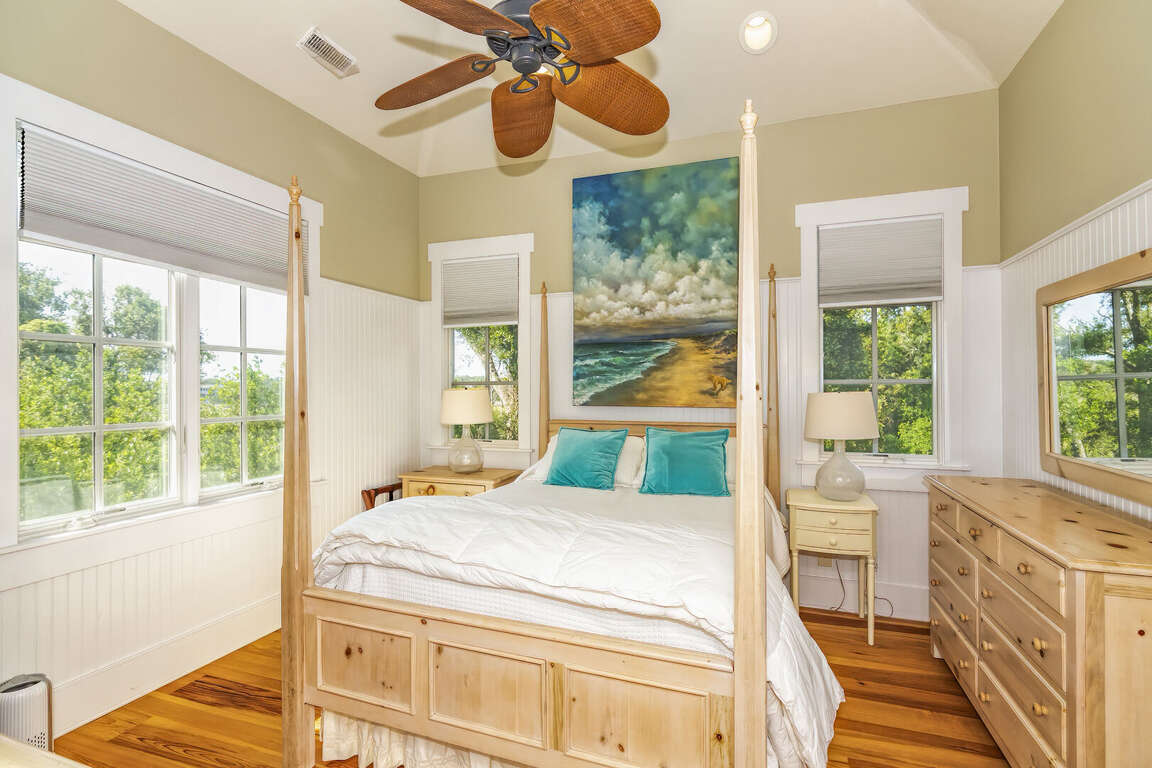 CHARMING will be your first thought as you traverse Barnard House's drive through white picket fences and flowering butterfly bushes. This six bedroom, six and a half bath, retreat on Bald Head's private Middle Island amazes you with its inspiring panoramas, tranquility and comfort. Step into the bricked foyer of this reverse-floor plan home, from there hardwoods lead you to the central lower-level gathering area which is perfect for family game-playing and movie watching. Check out the adjacent dinette with its own coffee bar-perfect for your morning java. Off this space are three bedrooms. The first is a Queen with a full ensuite bath and private access to the back screened porch that houses a ping pong table. The next bedroom is a twin bunk room with an additional trundle. It utilizes the nearby hall full bath. Beyond, a bedroom with two more twins also boasts its own ensuite. At the end of the hall, there's another large, bright corner Queen bedroom with its own ensuite. This level also houses the laundry, three outdoor showers and a placid marsh-front back deck with caressing winds and cicada serenades.<br />