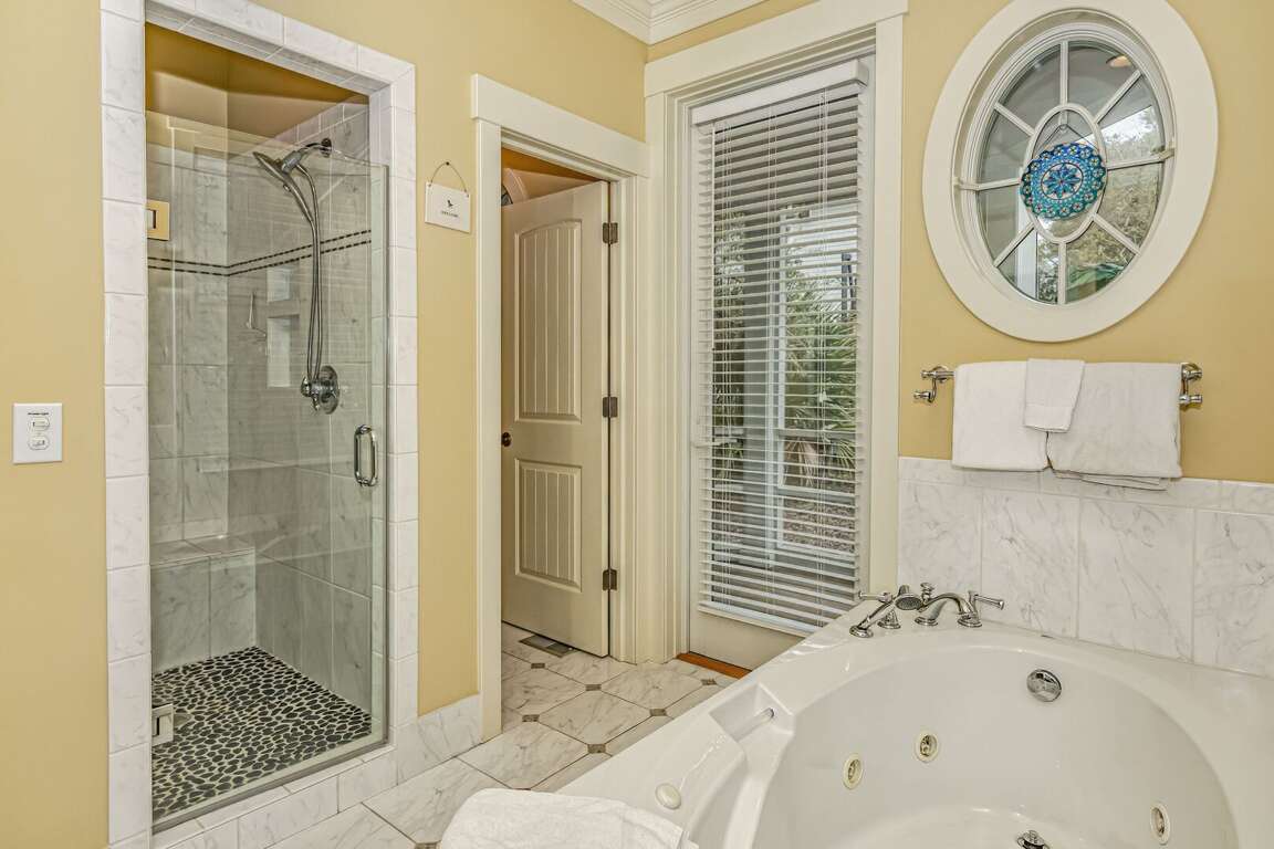 For those preferring more privacy, the home's crofter-just down the boardwalk and adjacent to the deck-extends a vaulted Queen suite with serene treetop views, a full bath with a pedestal tub, and its own private balcony. Don't miss making The Hermitage your Island vacation hideaway!<br />