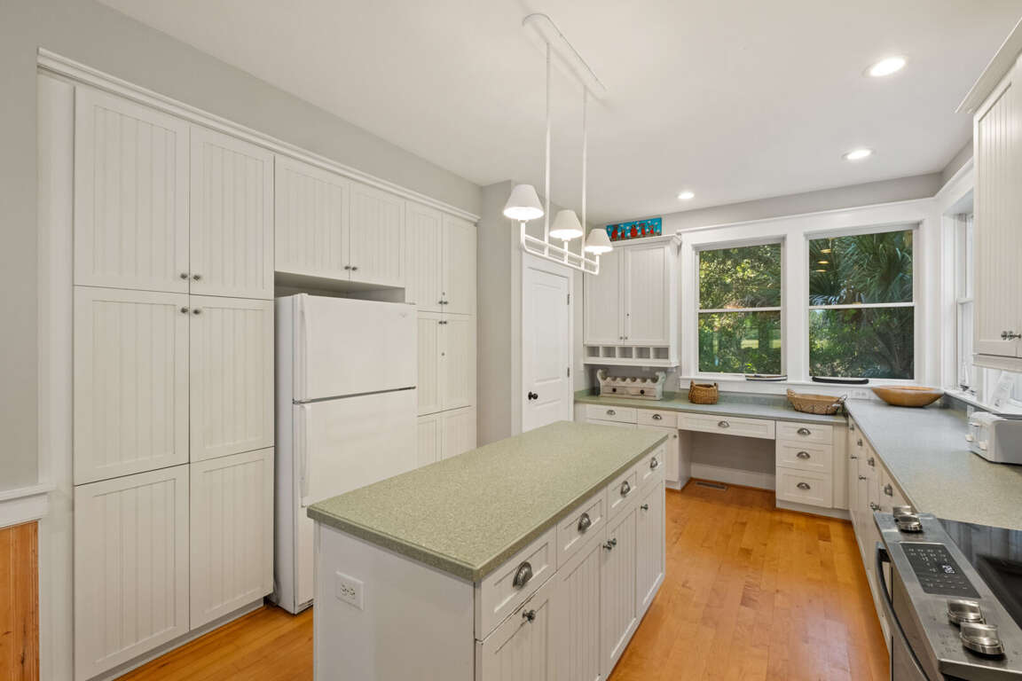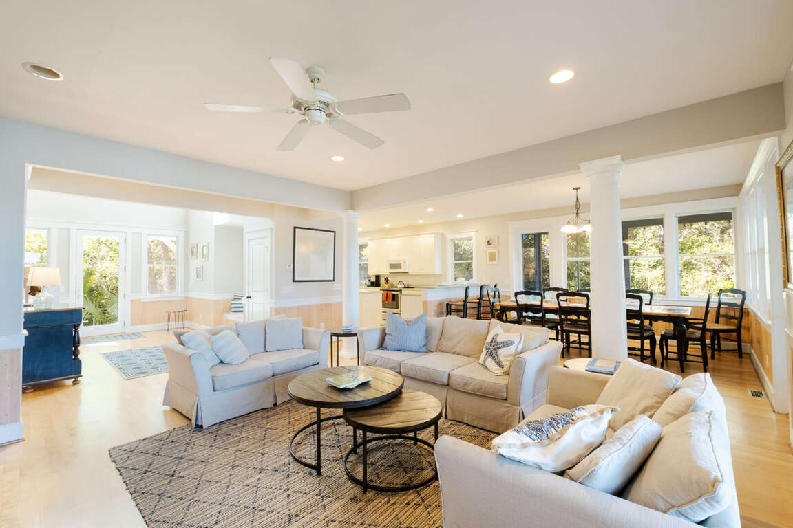 Nestled beside Bald Head's serene marsh, you'll find this five-bedroom, four-bath oasis down a quiet, shaded boardwalk amongst loblollies and palms. When you reach the covered front rocking chair porch, take a second to stop and listen to the gentle breezes rustling leaves, punctuated by soothing bird call.<br />