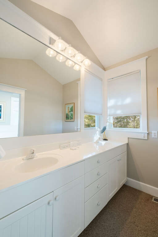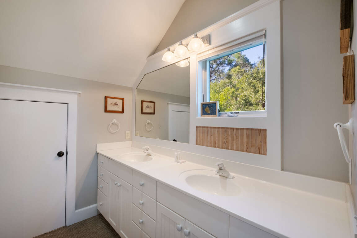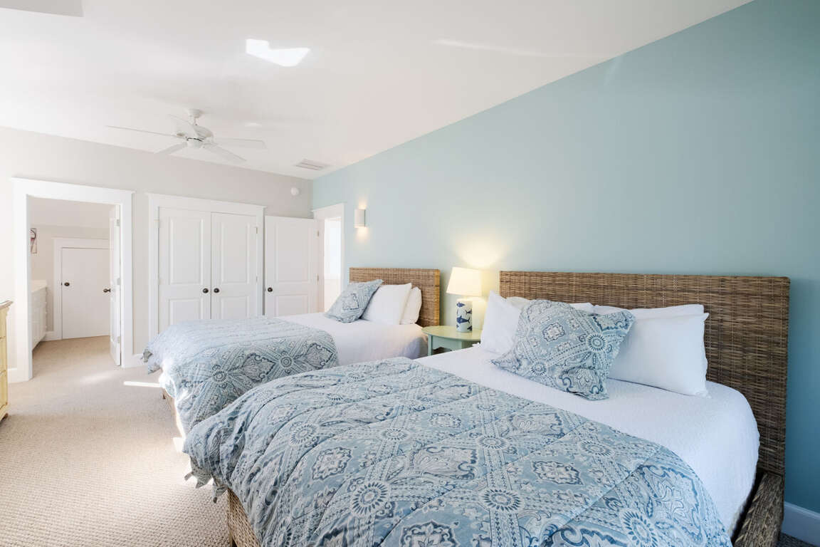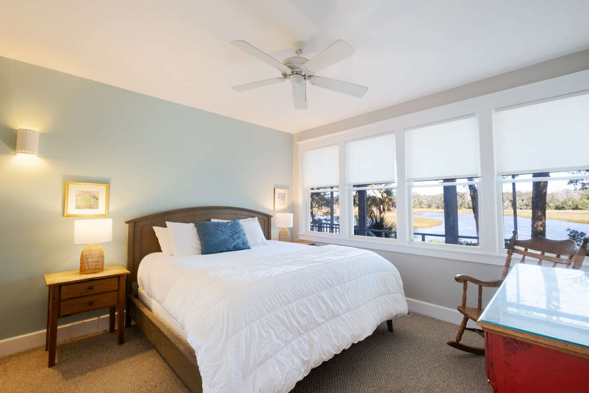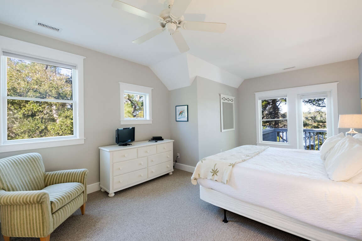 Upstairs, a cheery corner suite is outfitted with two Queens and enjoys its own ensuite with a tub/shower. There is also a second bedroom set up with two Doubles and a second Primary King suite with its own large full bath ensuite. All three of these upper bedrooms not only grant inspiring marsh tableaus through their windows but also deliver access to this floor's treetop deck-the perfect place to enjoy coffee while watching the sun rise or savor a quiet read or peaceful nap. If you are looking for your perfect Bald Head vacation, you need look no further than Marsh Onward!<br />
