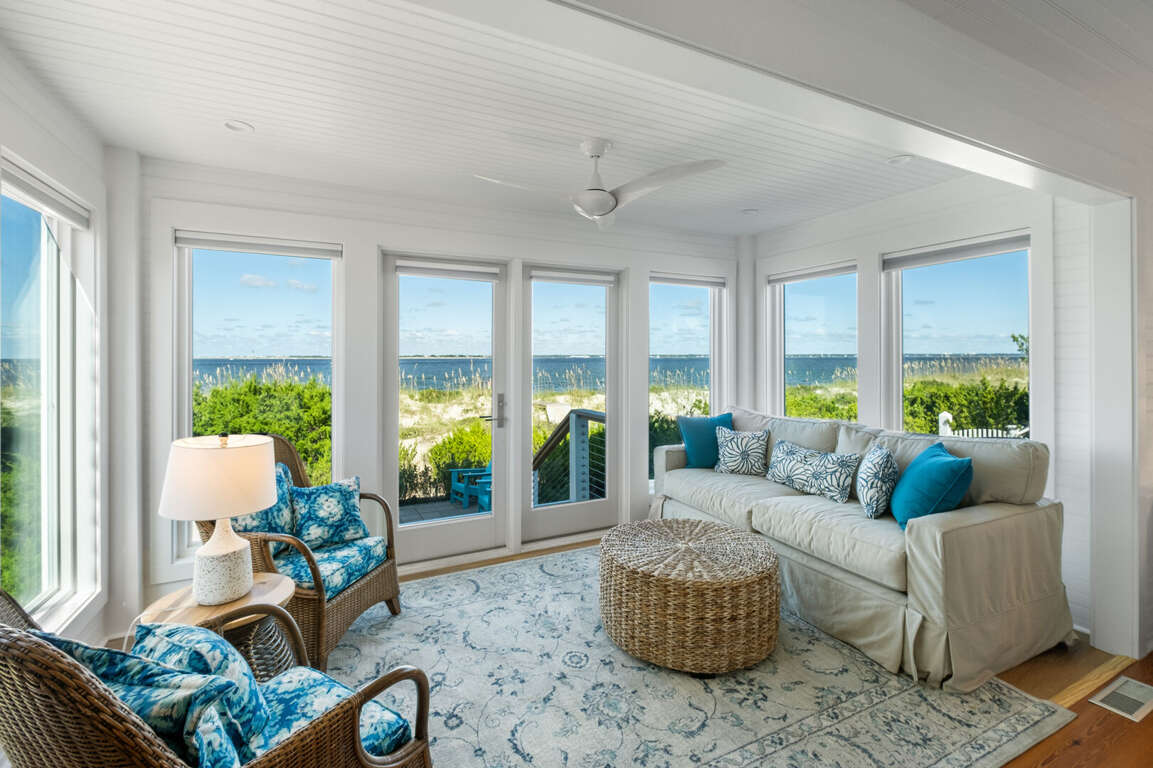 Back inside, the second level boasts a light-filled open floor plan surrounded on three sides by mesmerizing water vistas. The cheery living area and adjacent dining space are fronted by French doors opening onto an Atlantic-facing covered porch. With another dining set and additional seating here, you can enjoy sunset meals and snacks inside or al fresco. This floor is rounded out with the home's kitchen. Check out the marina views as well as marble counters and ample storage!<br />