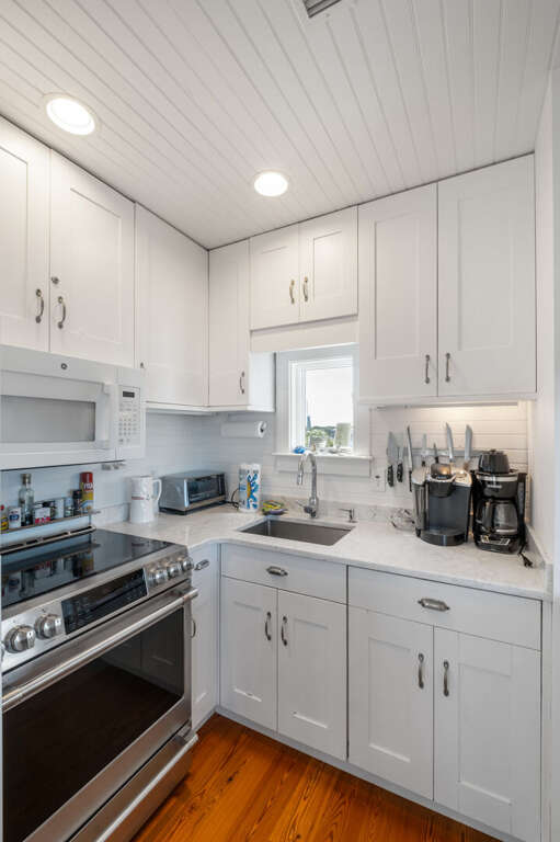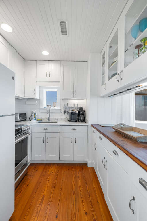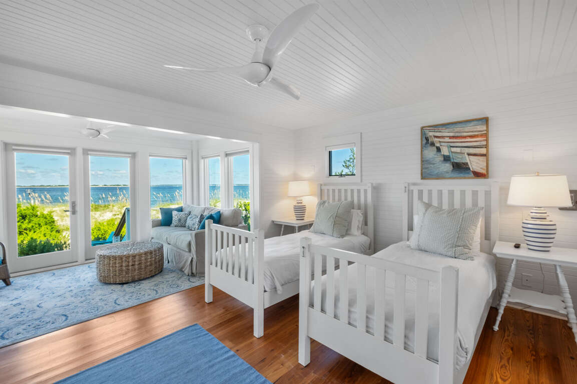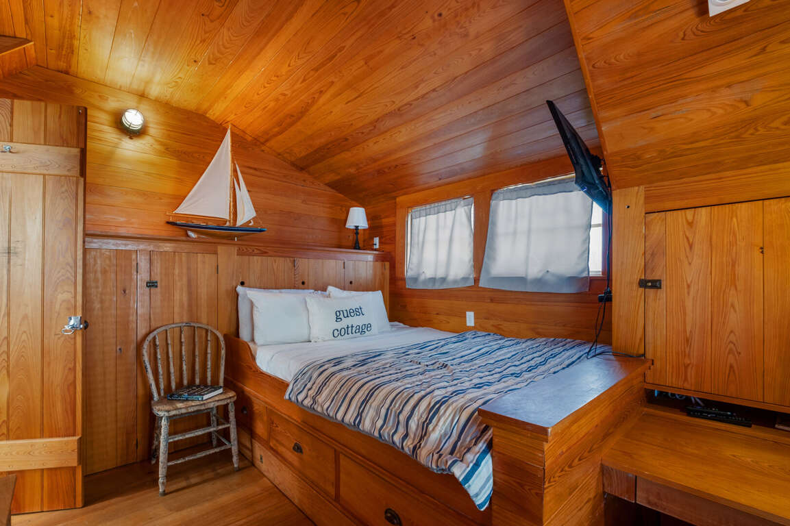 Next door, the home's beachfront crofter grants a very private additional Queen suite reminiscent of stepping into a shiplapped boat's hull and featuring its own full bath, built-in desk, closet and a snack bar with mini-fridge, microwave and hotpot.<br />