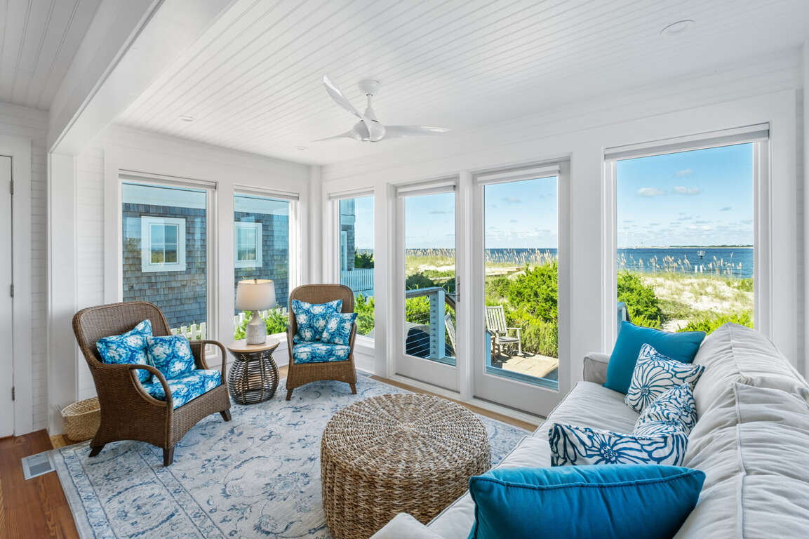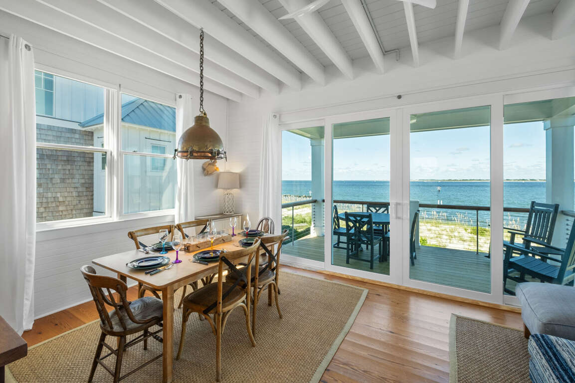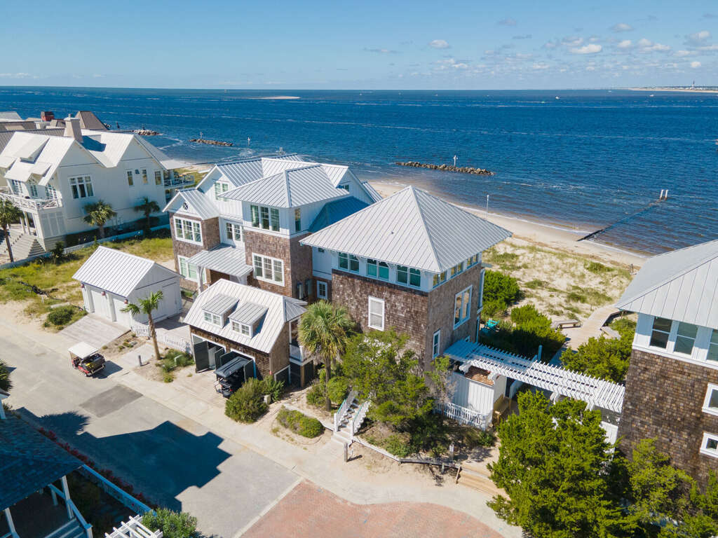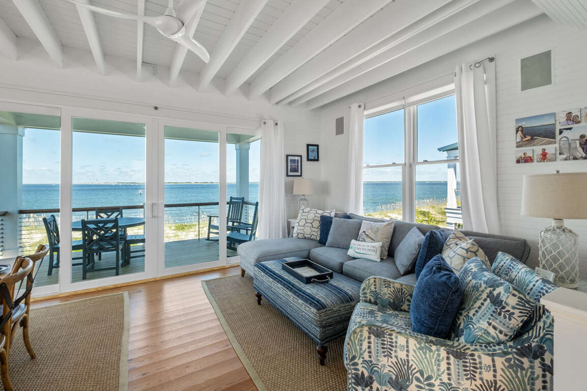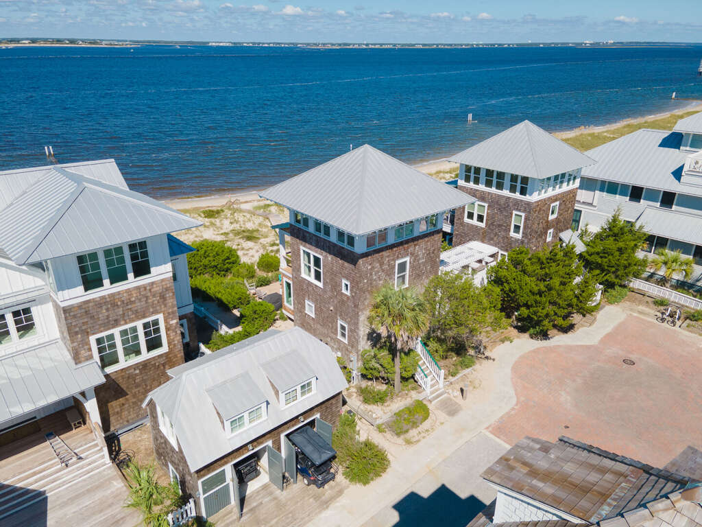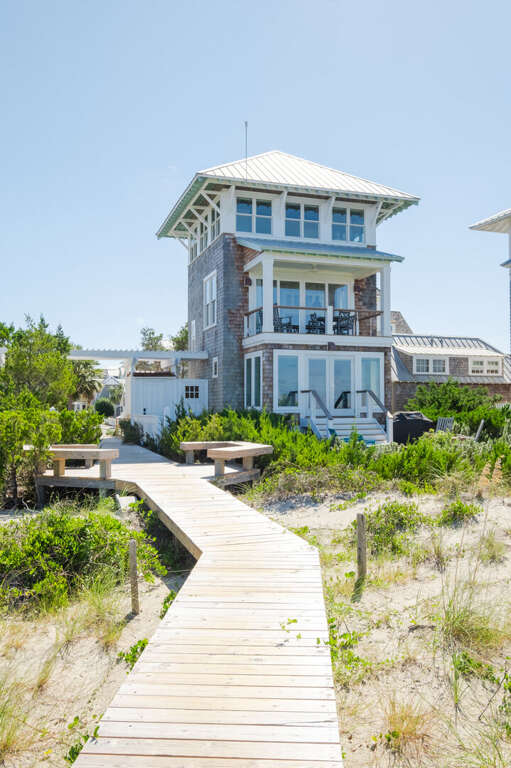 Welcome to one of the Island's iconic towers in Bald Head's prestigious Harbour area. This waterfront home offers sweeping views of the Atlantic, the Cape Fear River and BHI's marina. The first floor of this recently renovated charmer houses the laundry, a full bath and a very spacious ship-lapped Twin bedroom with warm heart-of-pine flooring and access to a screen porch-perfect for watching the sun glint off the sea or observing passing ships. Linger here or step down to the beachfront sun patio and rock your cares away while you inhale soothing ocean breezes and revel in the song of the breaking waves. Just steps away is your beach boardwalk that takes you to soft sands and the water.<br />