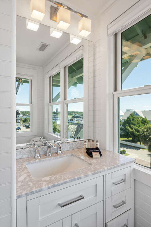Upstairs, the vaulted, window-surrounded Primary King provides 180-degree views highlighting Old Baldy as well as water panoramas and an full bath ensuite.<br />