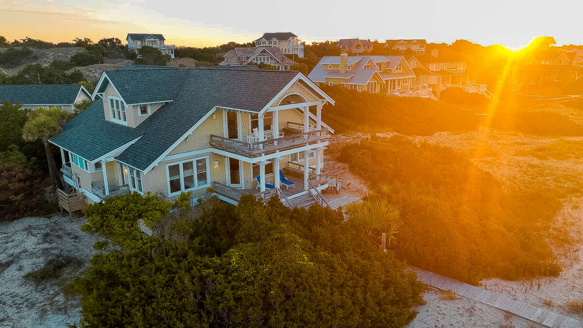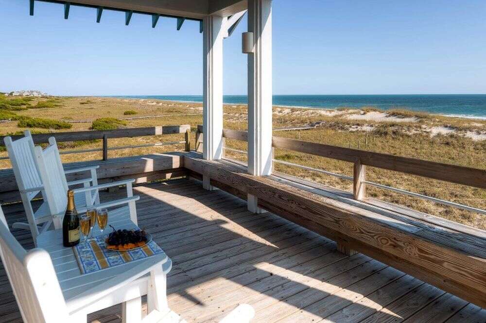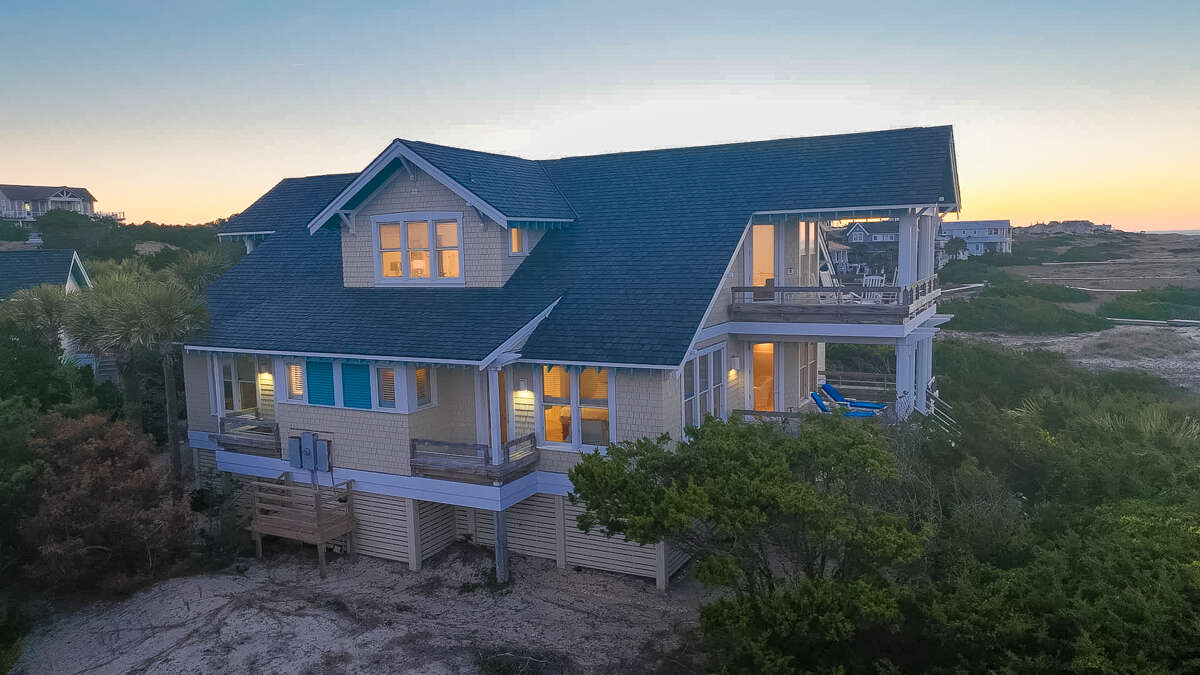 Discover Sandbagger, a five-bedroom house in Bald Head Island, NC, offering a mix of luxury and comfort with amenities including Internet Access, Air Conditioning and Television.