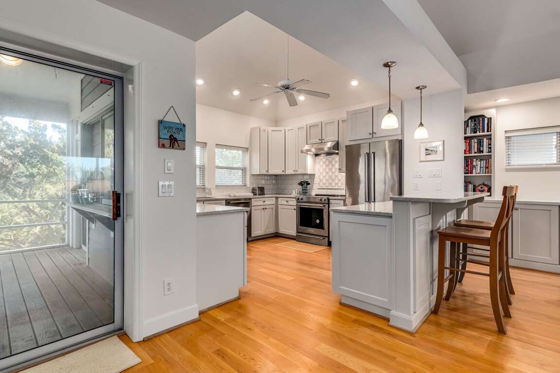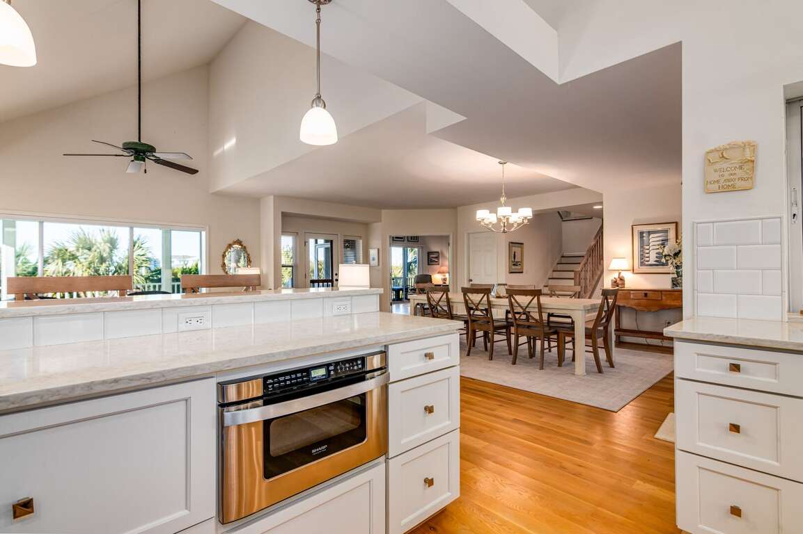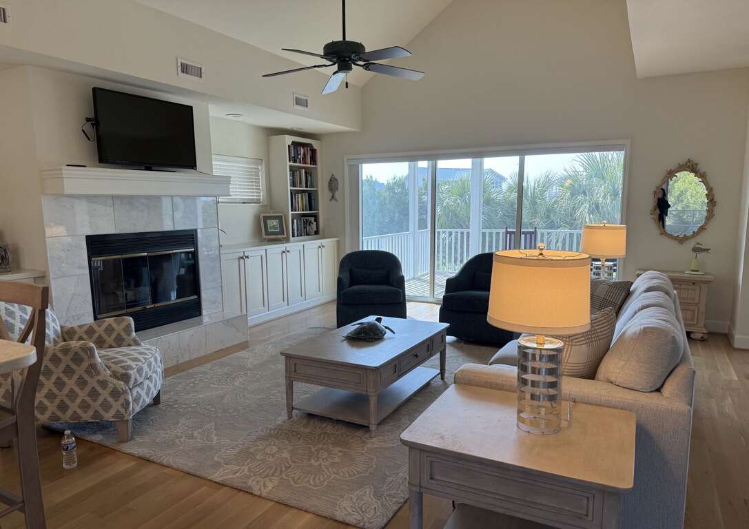 Enjoy the ultimate beach getaway at this unique home on Black Skimmer Trail offering three bedrooms with three full baths in the main home and across the breezeway welcome a large crofter with two bedrooms and one full bath. This home offers the ultimate living space by having two main living rooms in the main home with several deck/porch spaces for entertainment. Upstairs of the main home you will find the master oasis which has a private sitting space with a deck overlooking ocean views of South Beach. The master has a king bed along with an ensuite offering a stand alone shower or separate tub for relaxation. Downstairs of the main home you will find two bedrooms, one with a queen bed and another perfect for the kiddos with two bunk beds offering space for four. Both of these bedrooms have access to a hall bath. Walking down the breezeway you will find a two story crofter large enough to sleep four with two separate bedrooms and one hall bath. Upstairs of the crofter is a large living space with a large kitchenette, dining table and living room. Enjoy being right across from the beach and explore all of the island's amenities in the golf carts provided with the home. <br />