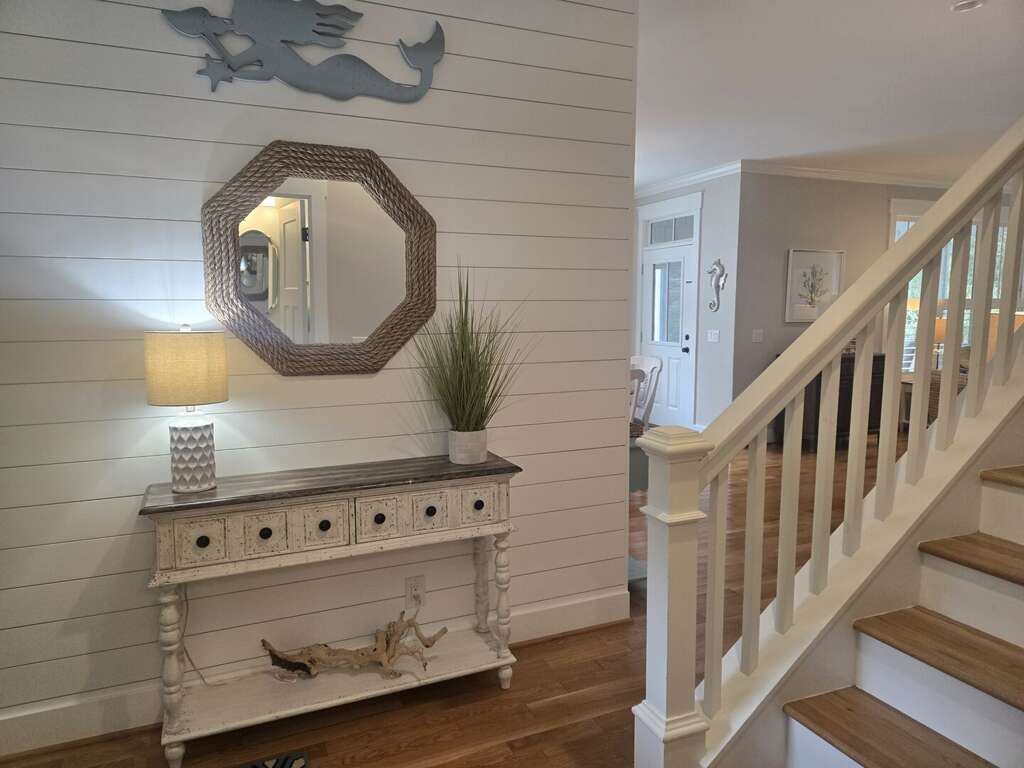Enjoy true indoor/outdoor living with a welcoming front porch, screened-in porch with seating and dining, and an open deck featuring outdoor dining, gas grill, and outdoor shower. Two golf carts (6-passenger + 4-passenger) are included, making beach days and island exploring effortless.<br />