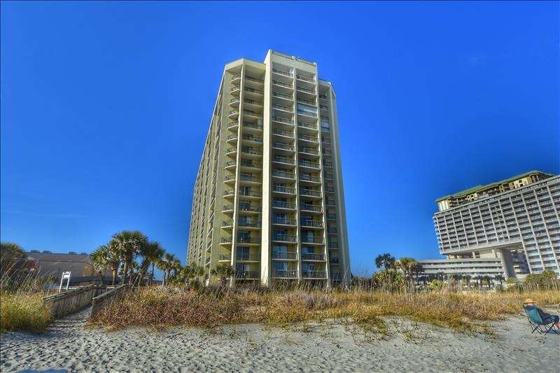 A great 2 bedroom vacation rental in Myrtle Beach South Carolina on the beach with amazing ocean views. This rental condo is close to the Splash Park and major shopping outlets so your whole groups will having something fun to do. What an amazing treat to be right on the beach so there's never any carting around to the public beaches. This property is professionally managed by Barefoot Resort Rentals they are your source for managed vacation rentals in Myrtle Beach, SC. When you book direct with Barefoot Resort Rentals you are booking with the source so you will avoid all the 3rd party fees and added commissions and get the very best rates. Also, working with an onsite vacation rental manager you will get the very best service from true local.