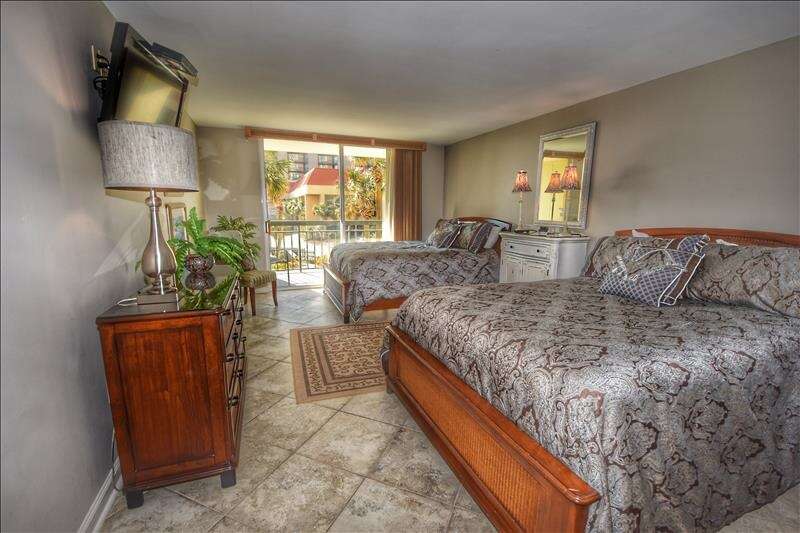- Sleeper Sofa: Yes, Bed Size 1st/Master: King, Bed Size 2nd Rm: 2 Queens, Disposal: Yes, Cookware: Yes, Kitchen Utensils: Yes, Toaster Oven: Yes, Square Footage, Est.: 1250, Lanai/Patio: Yes, Outside Furniture: Yes, Floor: 2, Free Parking: yes