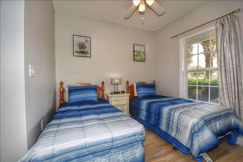 The master suite is simply divine with custom paint, a large dresser, flat screen TV, walk in closet and private bath suite. The second bedroom is on the opposite end of the villa with two twin beds, a flat screen TV, clothing chest and a full closet. The second full bath is just outside the door from the second bedroom. There is also a neatly tucked away laundry room.
