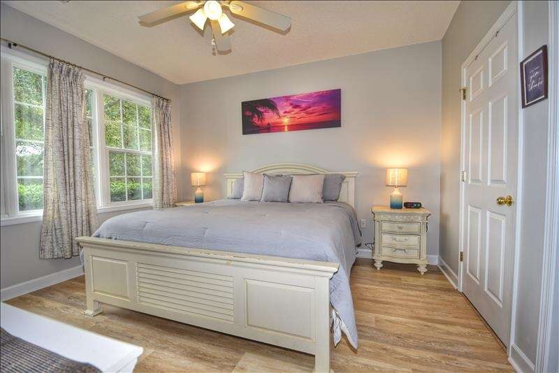 This outstanding two-bedroom, ground-floor, two bath villa is located in the beautiful Havens community at Barefoot Resort. This marvelous property has comfortable upscale furnishings and an amazing assortment of amenities sure to please everyone. The charming kitchen is well stocked with dishes, cookware, utensils and all small and large appliances you will need for a great summer or winter vacation here. Your dining choices are unlimited with the beautiful table for six inside. Stake a claim to a poolside table and grill out by the pool, just a few steps from the villa.