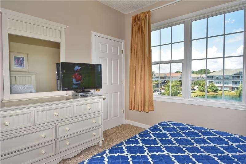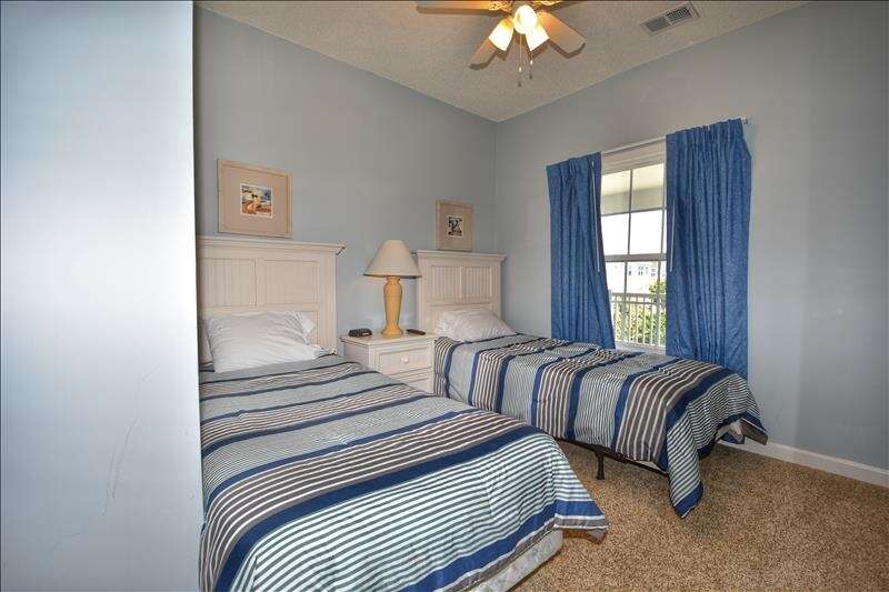 The master suite contains a king size bed, walk in closet, and private bath. The second bedroom has two twins to comfortable sleep four people in the unit.