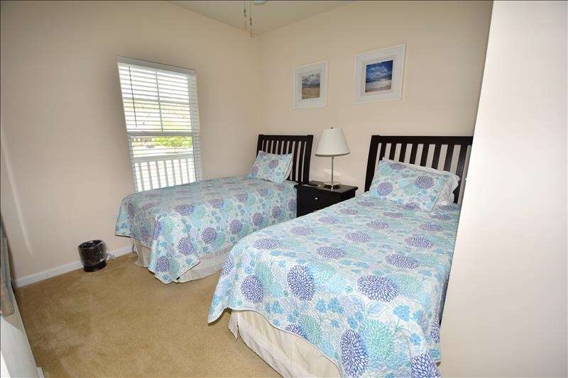 - Bed Size 1st/Master: King, Bed Size 2nd Rm: 2 Twins, Video Game Player: X Box 360, Disposal: Yes, Cookware: Yes, Kitchen Utensils: Yes, Square Footage, Est.: 1050, Starter Paper Prod: Yes, Lanai/Patio: Not screened, Outside Furniture: Yes, Floor: 2nd, Free Parking: Yes