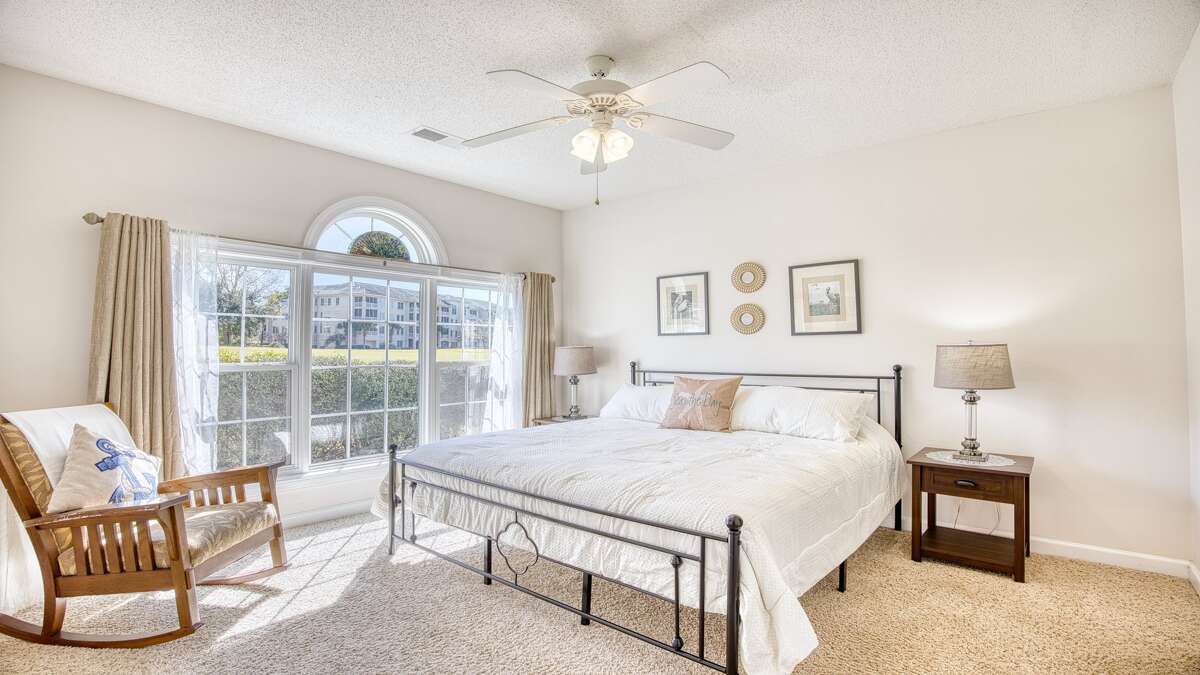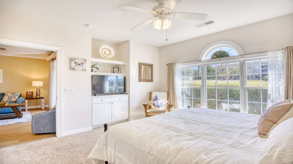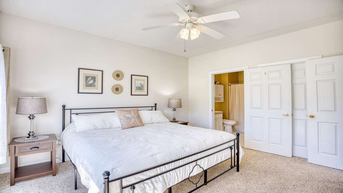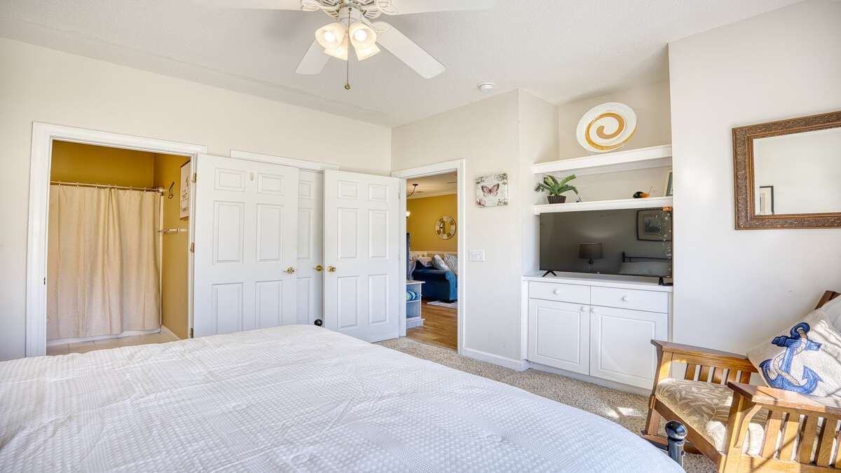 The master suite has a very comfortable king size bed. A handsomely decorated full bath suite adjoins the master bedroom, which also has a flat panel TV and a full walk in closet!