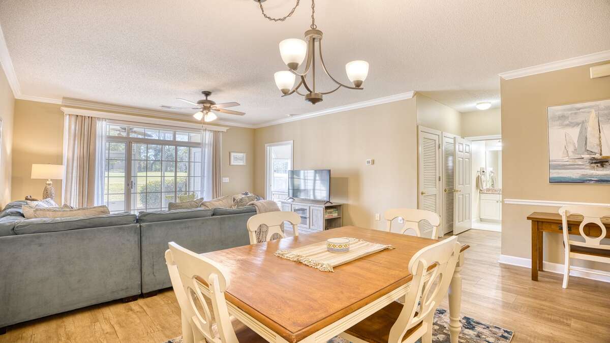 Life does not get any better than spending your vacation escape at this marvelous first floor unit villa with over 1,050 square feet of beautiful living space, dramatic decor, designer furnishings and the owner’s wonderful personal touches that make this villa so appealing. The sweeping open floor plan provides the perfect atmosphere for families, couples or golfers to stay and play together.