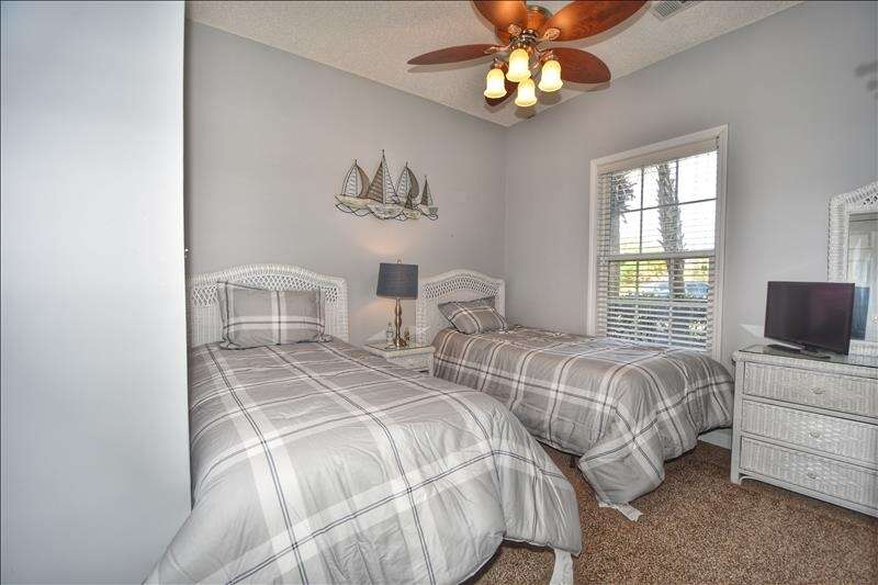 - Sleeper Sofa: No, Bed Size 1st/Master: Split King, Bed Size 2nd Rm: 2 Twins, Disposal: Yes, Cookware: Yes, Kitchen Utensils: Yes, Square Footage, Est.: 1050, Tea Kettle: Yes, Starter Paper Prod: Yes, Lanai/Patio: Screened, Outside Furniture: Yes, Floor: 1, Free Parking: Yes
