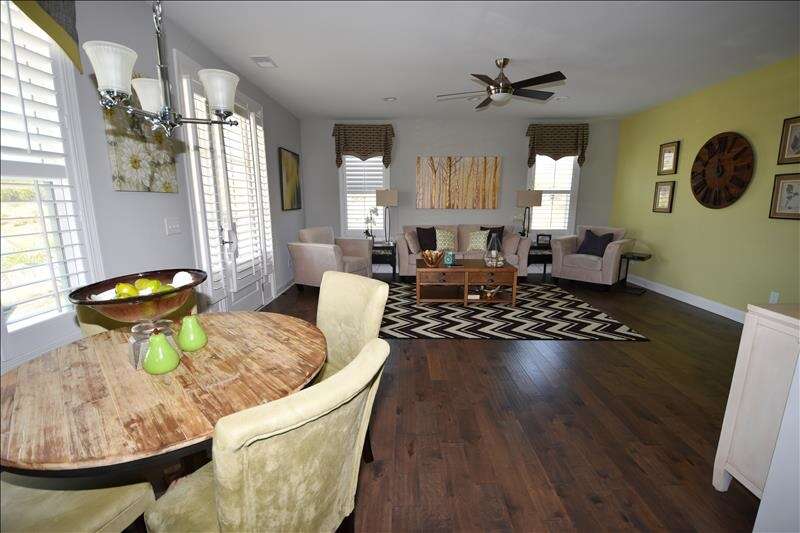 Off the kitchen is the wonderful dining room and main living area, offering a variety of entertainment options and furnishings with comfort and style.