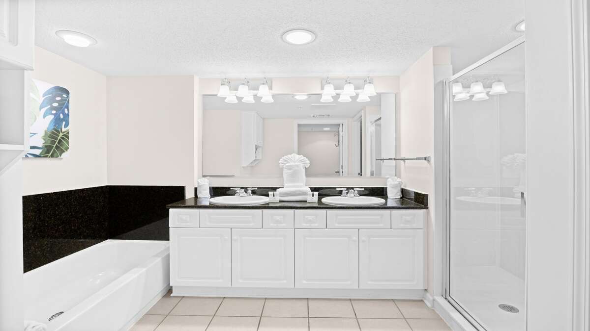 - Sleeper Sofa: No, Bed Size 1st/Master: King, Bed Size 2nd Rm: Queen, Bed Size 3rd Rm: 2 Queen, Games: Yes, Disposal: Yes, Cookware: Yes, Kitchen Utensils: Yes, Square Footage, Est.: 1400, Tea Kettle: Yes, Starter Paper Prod: Yes, Jacuzzi Tub: No, Walk In Shower: Yes, Lanai/Patio: Yes, Outside Furniture: Yes, Floor: 4, Free Parking: Yes - 2 CARS ONLY