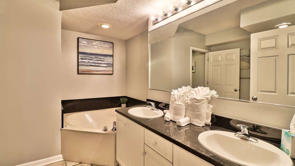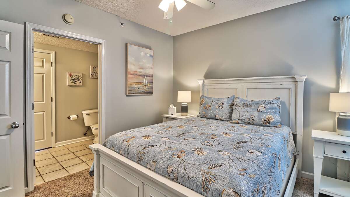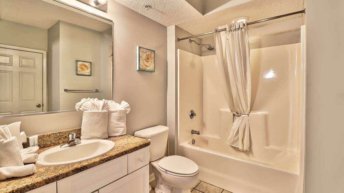 The marvelous master suite has a king size bed, dresser, TV, and a lavish private bath suite. Simply amazing! The second bedroom features a queen size bed, dresser, TV and another private bath suite. A third bedroom is outfitted with two queen beds and another full bathroom right outside the door. The fourth bedroom features a king size bed, dresser and TV. A complete laundry room is centrally located in the condo and we even furnish the laundry supplies! No need to take home dirty clothes after your perfect vacation here in paradise.