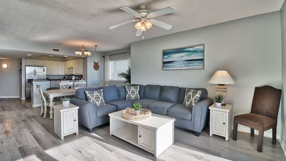 Decorated with comfortable and pleasing furnishings throughout, this outstanding condominium has been meticulously cared for and maintained. The spacious living area is furnished with a sectional sofa and chair. The gourmet kitchen is well stocked with every appliance needed to prepare a scrumptious meal in this wonderful home away from home. Our guest can enjoy dining on the private balcony or in the full dining room, both with outstanding views.