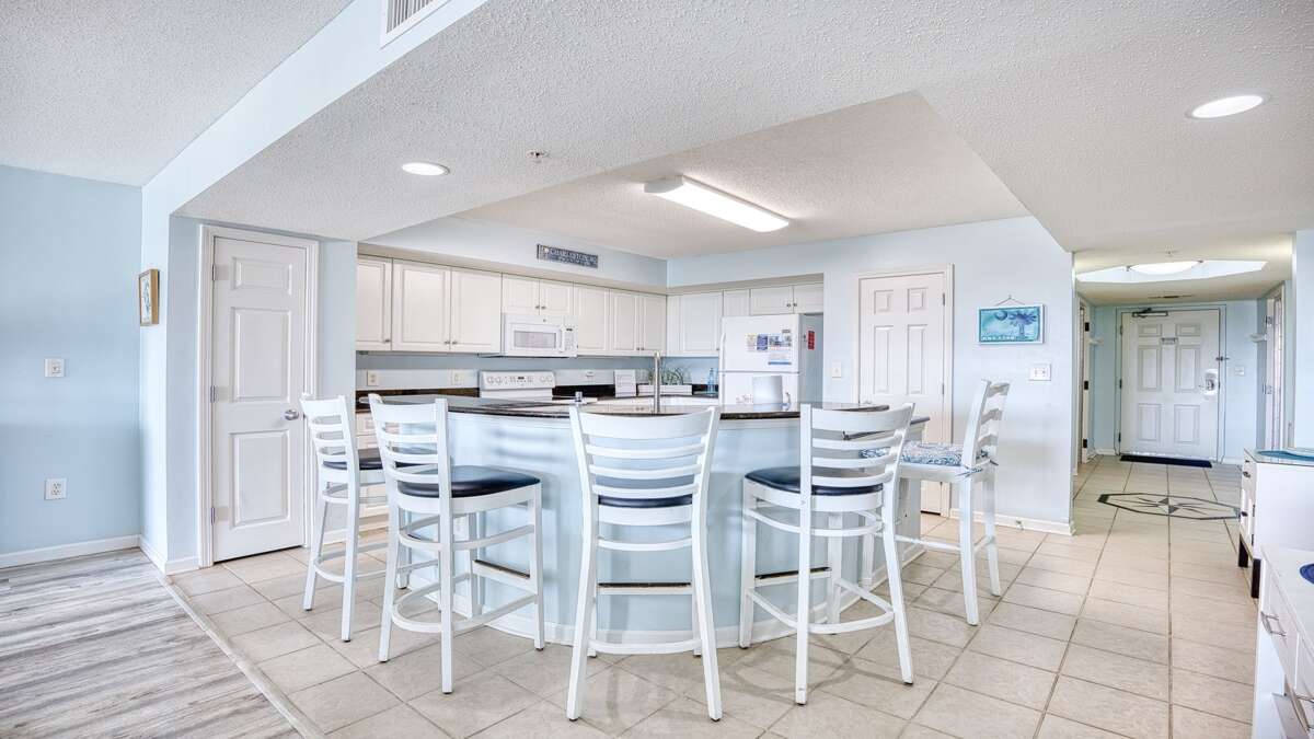This large open plan provides a great atmosphere for entertainment and conversation yet is separated enough for individual activities. The beautiful kitchen is completely stocked with upscale appliances to the delight of any chef. The breakfast bar is a great spot for morning coffee or keeping the cook company.