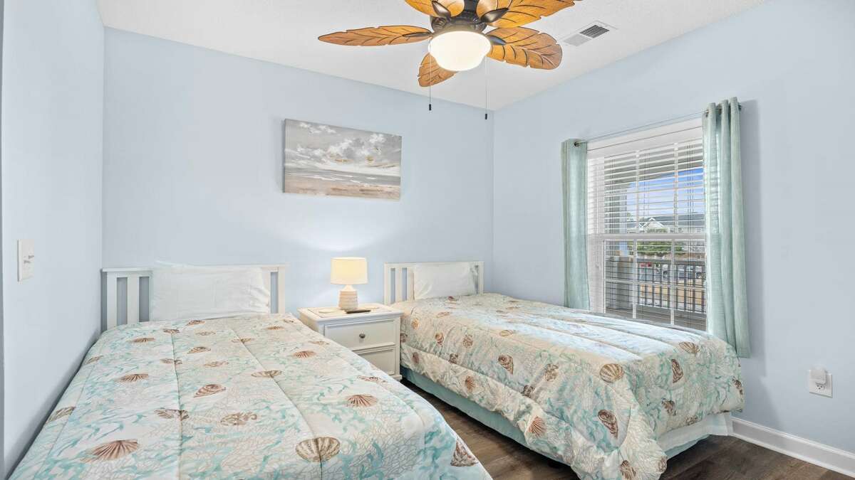 - Bed Size 1st/Master: King, Bed Size 2nd Rm: Two Twins, Disposal: Yes, Cookware: Yes, Kitchen Utensils: Yes, Square Footage, Est.: 1050, Starter Paper Prod: Yes, Lanai/Patio: Yes, Outside Furniture: Yes, Floor: 2nd, Free Parking: Yes