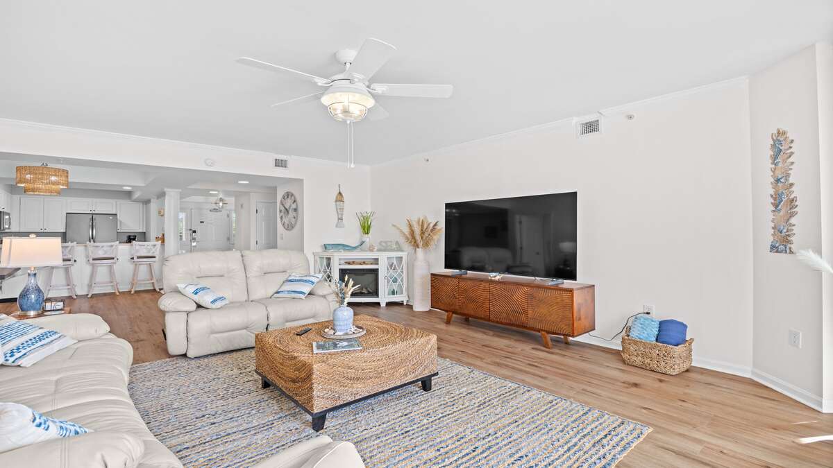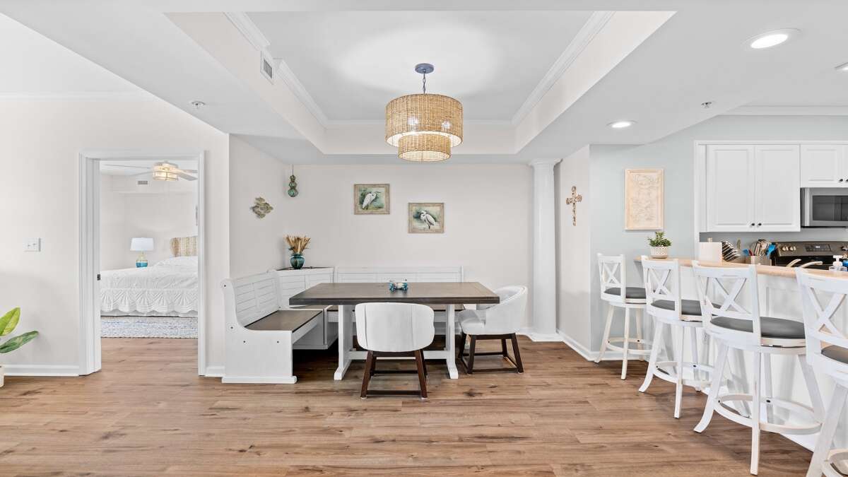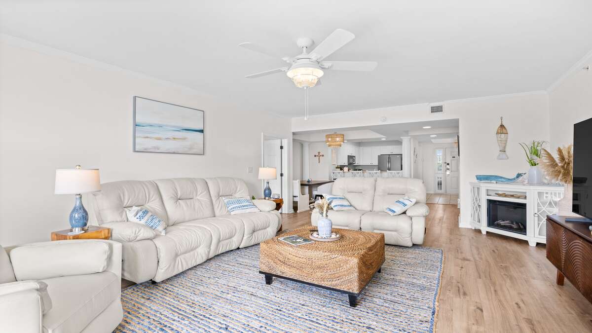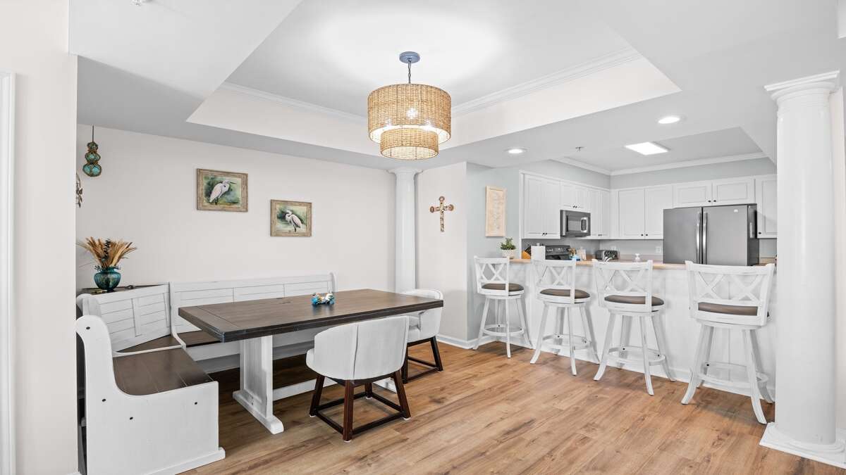 Decorated with comfortable and pleasing furnishings throughout, this outstanding condominium has been meticulously cared for and maintained. The spacious living area is furnished with a sofa, love seat and chair. The gourmet kitchen is well stocked with every appliance needed to prepare a scrumptious meal in this wonderful home away from home. Our guest can enjoy dining on the private balcony or in the full dining room, both with outstanding views.