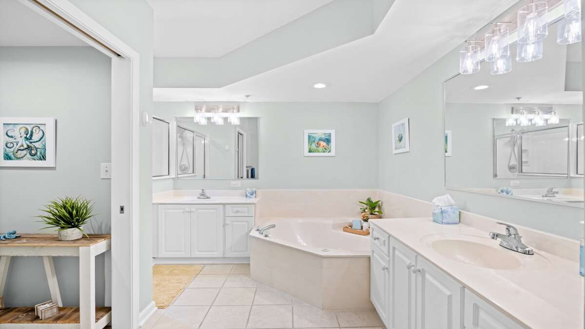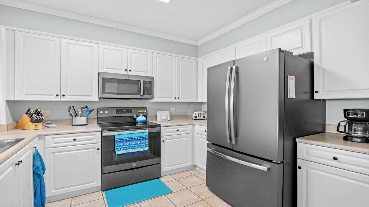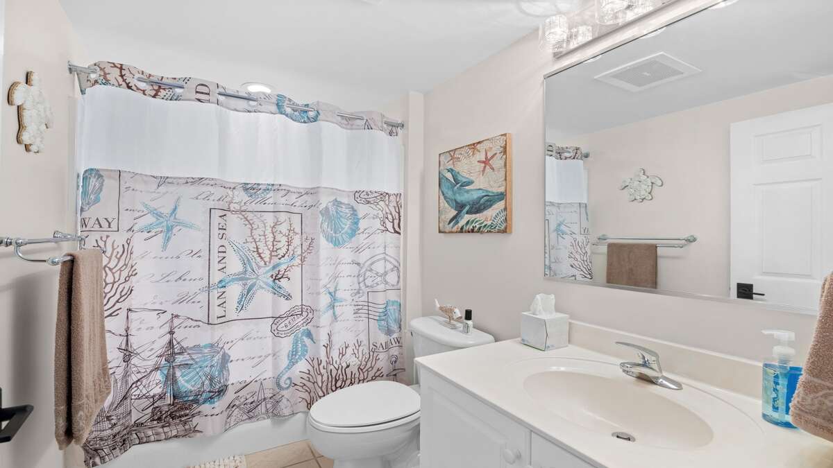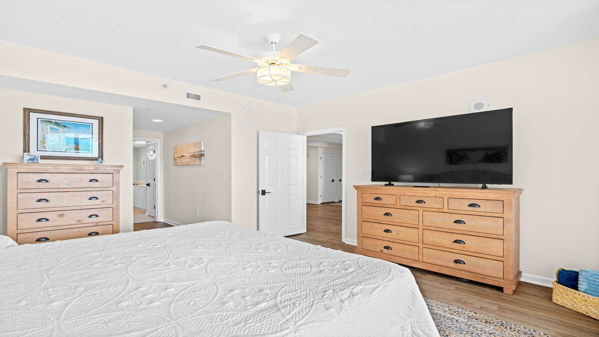 The marvelous master suite has a king size bed, dresser, TV, and a lavish private bath suite. Simply amazing! The second bedroom features a king size bed, dresser, TV and another private bath suite. A third bedroom is outfitted with a full bed and a twin bed and another full bathroom right outside the door. A complete laundry room is centrally located in the condo and we even furnish the laundry supplies! No need to take home dirty clothes after your perfect vacation here in paradise.