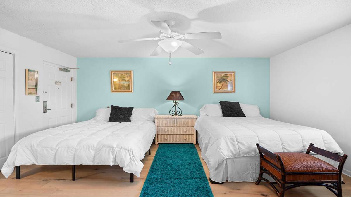 - Bed Size 1st/Master: Two Queens, Bed Size 2nd Rm: Two Queens, Bed Size 3rd Rm: Queen, Cookware: Yes, Kitchen Utensils: Yes, Square Footage, Est.: 2300, Starter Paper Prod: Yes, Walk In Shower: Yes, Lanai/Patio: Yes, Outside Furniture: Yes, Floor: 5th, Free Parking: Yes