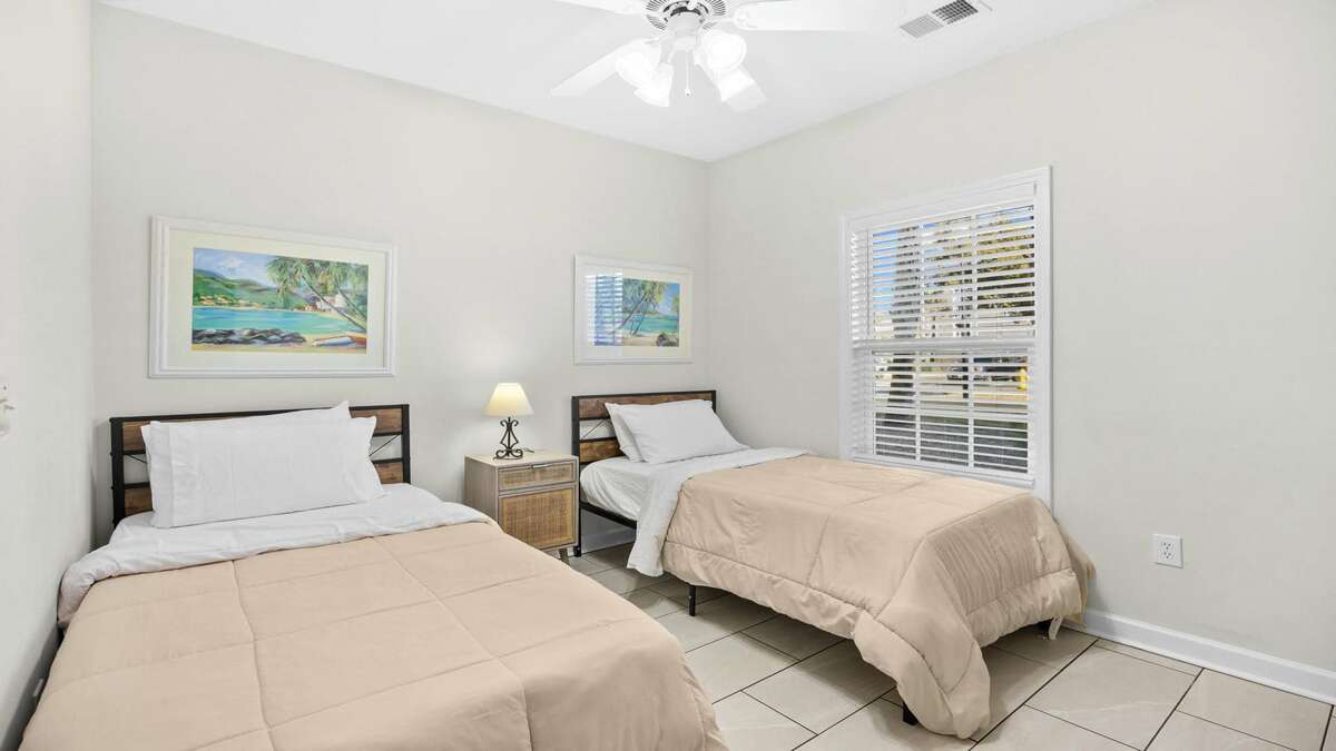 The lovely second bedroom offers two twin beds, a full closet, a chest of drawers, and a TV. A second full bathroom serves both the guest bedroom and visiting guests. The laundry room, located off the foyer, adds to your convenience.