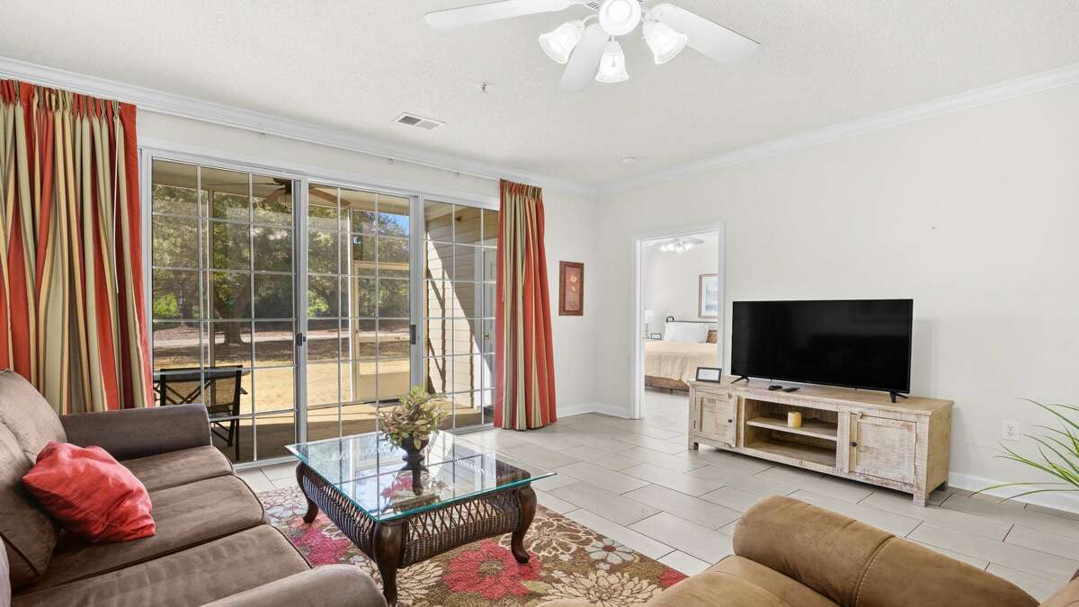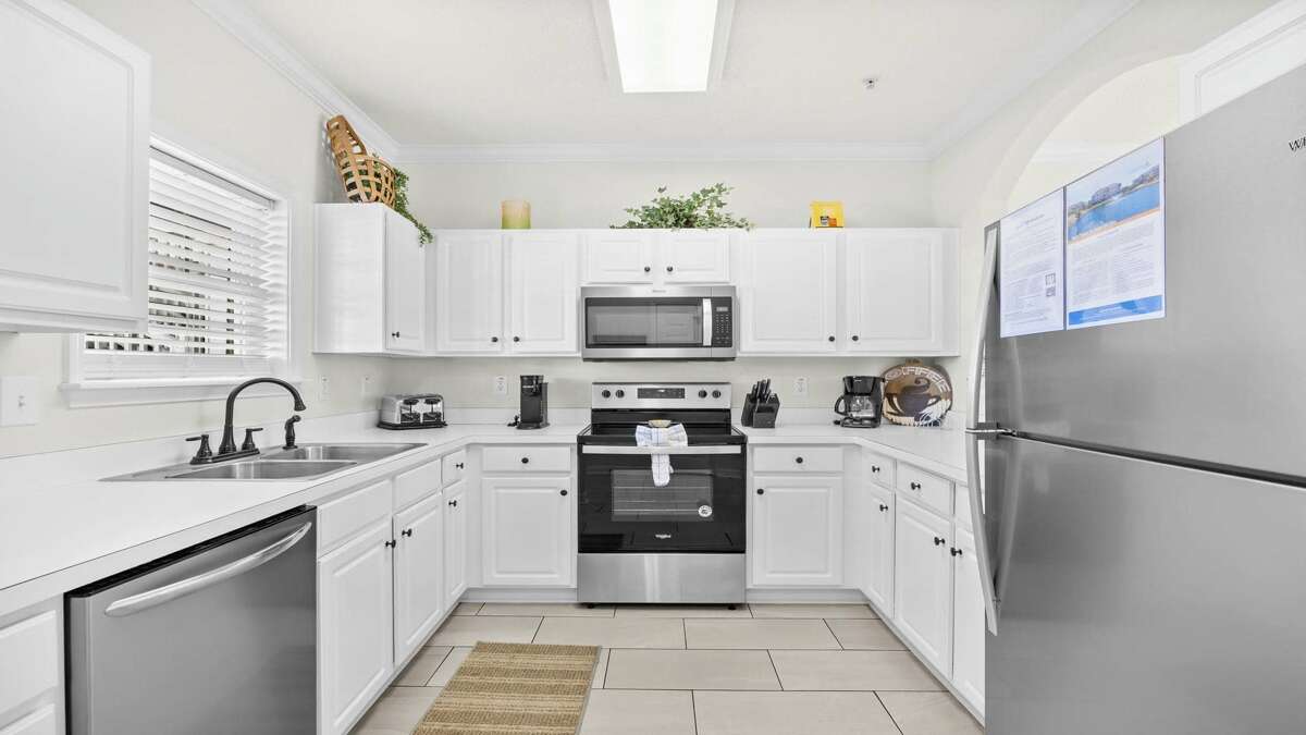 The full-size gourmet kitchen is fully stocked with everything you need, including special amenities sure to please. Dine in complete comfort at the elegant dining table with seating for six, or take your meal outside to the lanai and enjoy the beautiful view of the pond and fountain. The open floor plan makes it easy to keep the cook company and enjoy great conversation.