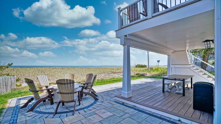 Notable for its oceanfront position, this property offers a unique blend of spacious living areas and inviting outdoor amenities, making it an ideal sanctuary for both relaxation and recreation. The charming nautical decor throughout enhances the coastal atmosphere, creating a warm and welcoming environment for guests. Step outside to enjoy the expansive deck, perfect for sunbathing or hosting al fresco dinners under the stars. The dedicated dining area and fire pit allow for memorable evenings filled with laughter and camaraderie. With direct beach access just steps away, guests can indulge in the freedom of coastal living. This property is designed to elevate your vacation experience, combining comfort with the allure of seaside charm, inviting you to unwind fully.