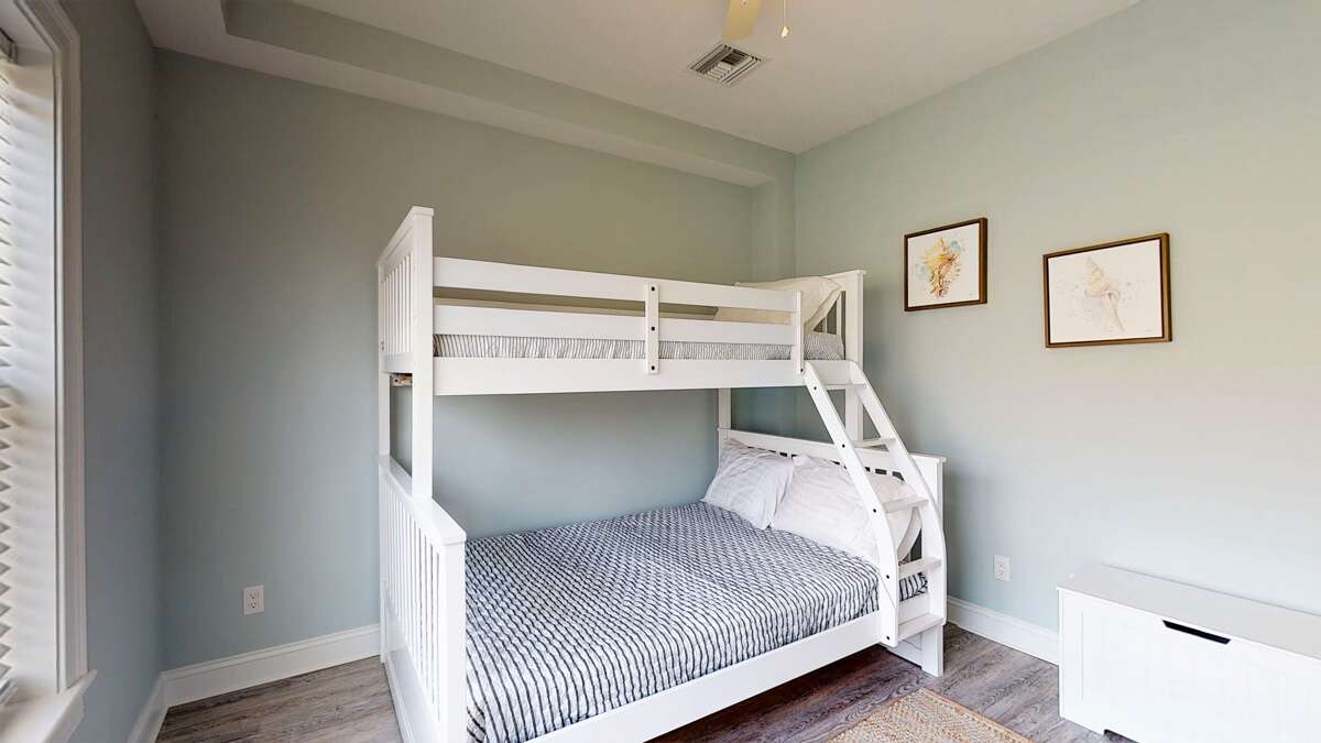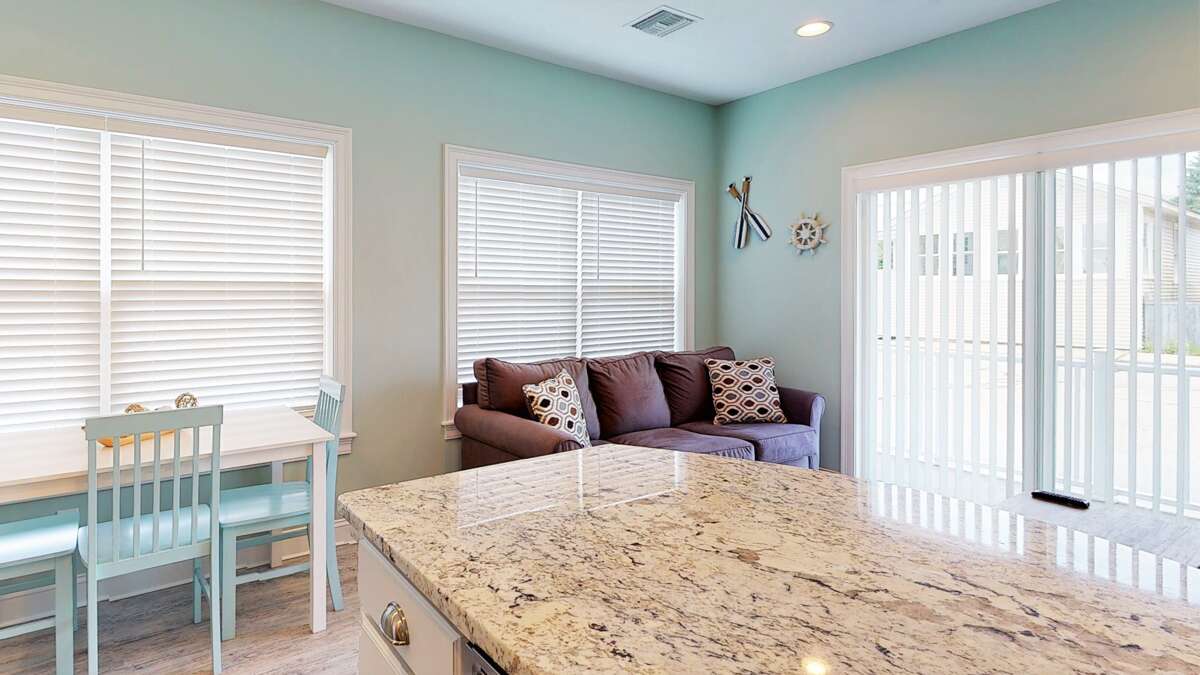 Guests will appreciate the modern amenities and tasteful decor of Beachside Abode 1A, which enhance both comfort and functionality during their stay. The property features a well-equipped kitchen with a gas stove and microwave, perfect for preparing meals after a day at the beach. The inviting living space showcases a decor style that blends contemporary elegance with coastal charm, creating an atmosphere of relaxation. The master bedroom and secondary room, featuring a cozy bunk bed, provide ample sleeping arrangements for up to seven guests. An amenities overview reveals a spacious bathroom complete with a shower/tub combination, and outdoor communal facilities, including a propane grill and patio, allowing guests to enjoy the fresh ocean air.