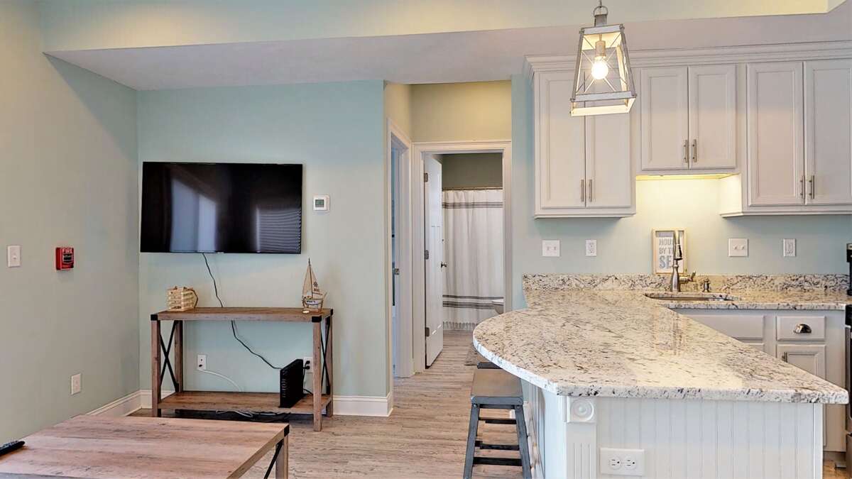 Situated in the heart of Old Orchard Beach, Beachside Abode 1A is a thoughtfully designed 2-bedroom condo that comfortably accommodates up to 7 guests, making it an ideal retreat for families or groups seeking a memorable coastal getaway. The bedroom setup includes a master bedroom featuring a cozy queen bed, while the secondary room is equipped with a versatile bunk bed that can sleep multiple guests—perfect for children or friends. With a convenient full bathroom and a spacious living area measuring 746 square feet, guests can enjoy ample space and comfort. The property is designed to enhance relaxation and connection, ensuring that visitors can unwind after a day of exploring the nearby beach and local attractions.